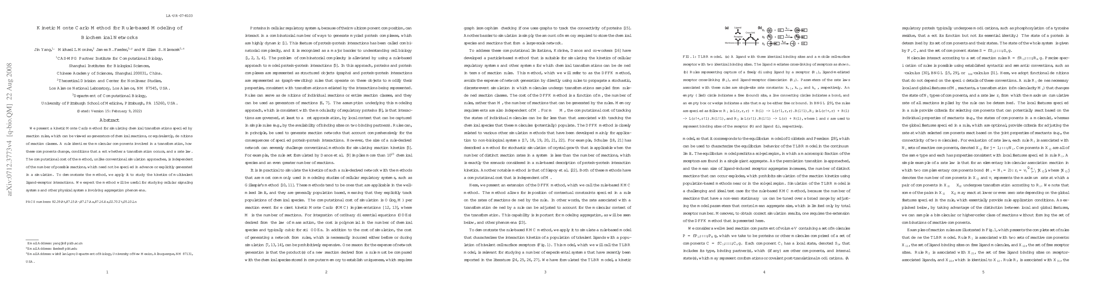 The paper introduces a kinetic Monte Carlo method for simulating biochemical networks defined by reaction rules, which enables simulations without specifying all possible reactions upfront. The method's computational efficiency makes it suitable for studying complex cellular signaling systems and aggregation phenomena.