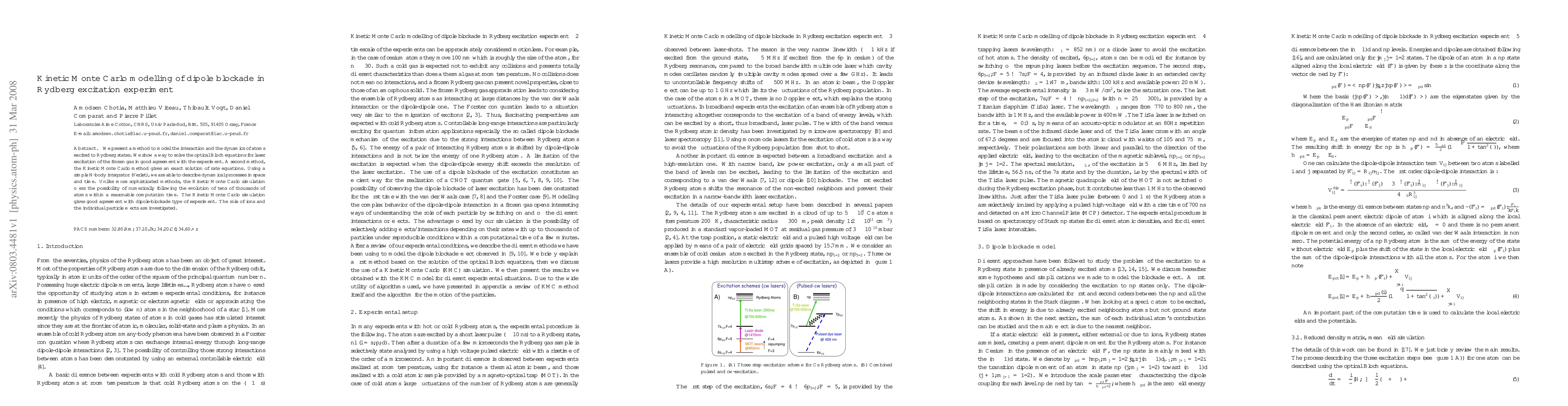 We present a method to model the interaction and the dynamics of atoms excited to Rydberg states. We show a way to solve the optical Bloch equations for laser excitation of the frozen gas in good agreement with the experiment. A second method, the Kinetic Monte Carlo method gives an exact solution of rate equations. Using a simple N-body integrator (Verlet), we are able to describe dynamical processes in space and time. Unlike more sophisticated methods, the Kinetic Monte Carlo simulation offers the possibility of numerically following the evolution of tens of thousands of atoms within a reasonable computation time. The Kinetic Monte Carlo simulation gives good agreement with dipole-blockade type of experiment. The role of ions and the individual particle effects are investigated.