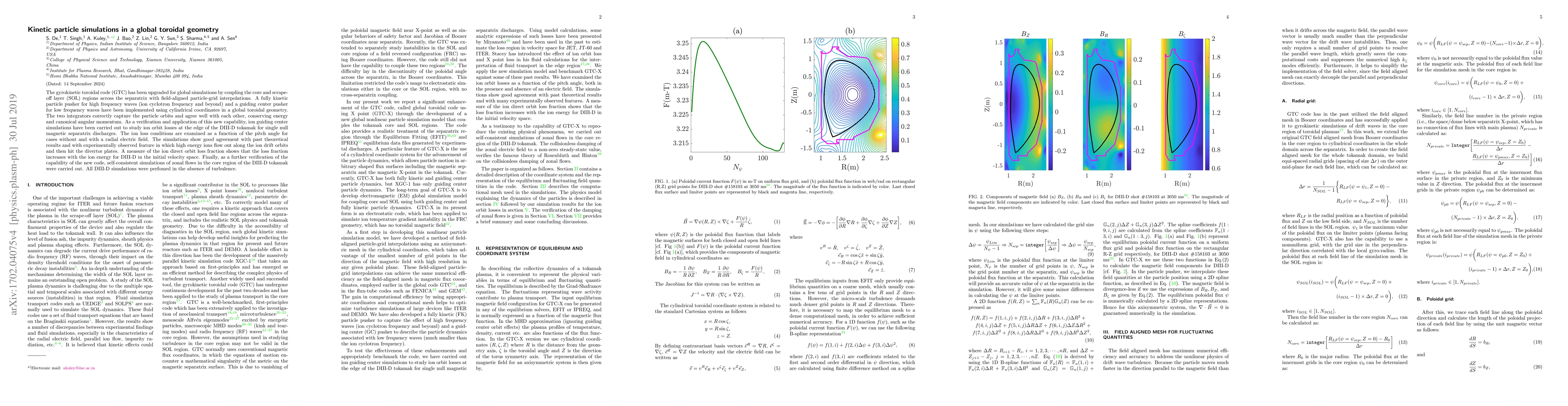 The upgraded gyrokinetic toroidal code (GTC) now simulates global toroidal plasmas by coupling core and SOL regions, implementing both high-frequency and low-frequency particle pushers. Simulations of ion orbit losses in DIII-D tokamak show agreement with theoretical and experimental results, indicating increased loss fraction with higher ion energy.