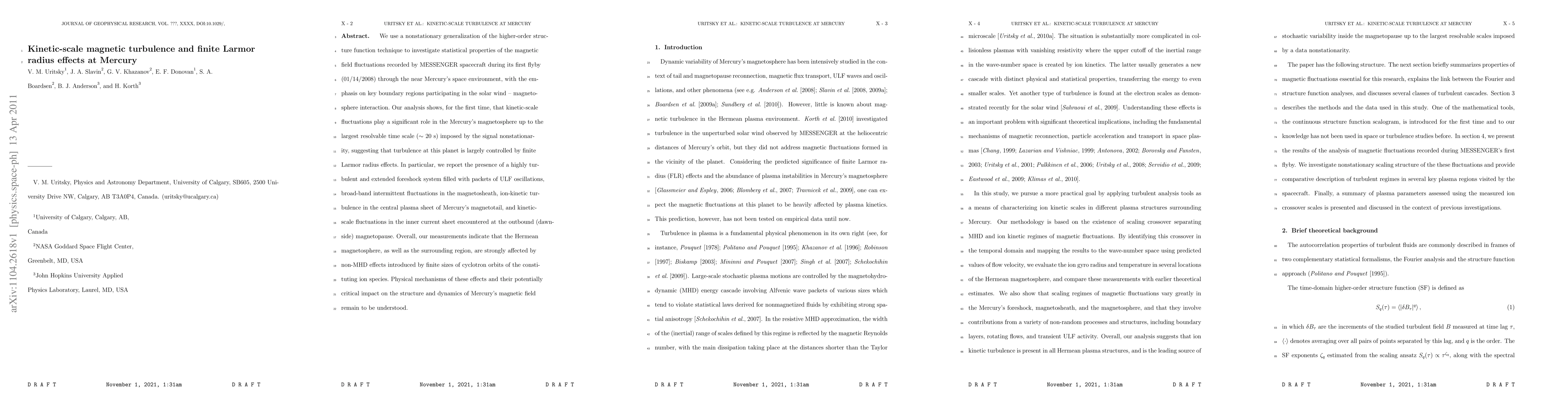 This study employs advanced techniques to analyze magnetic field fluctuations near Mercury, revealing significant kinetic-scale turbulence and the influence of finite Larmor radius effects. The findings highlight the presence of turbulence in various regions, indicating that non-MHD effects play a crucial role in shaping Mercury's magnetosphere.
