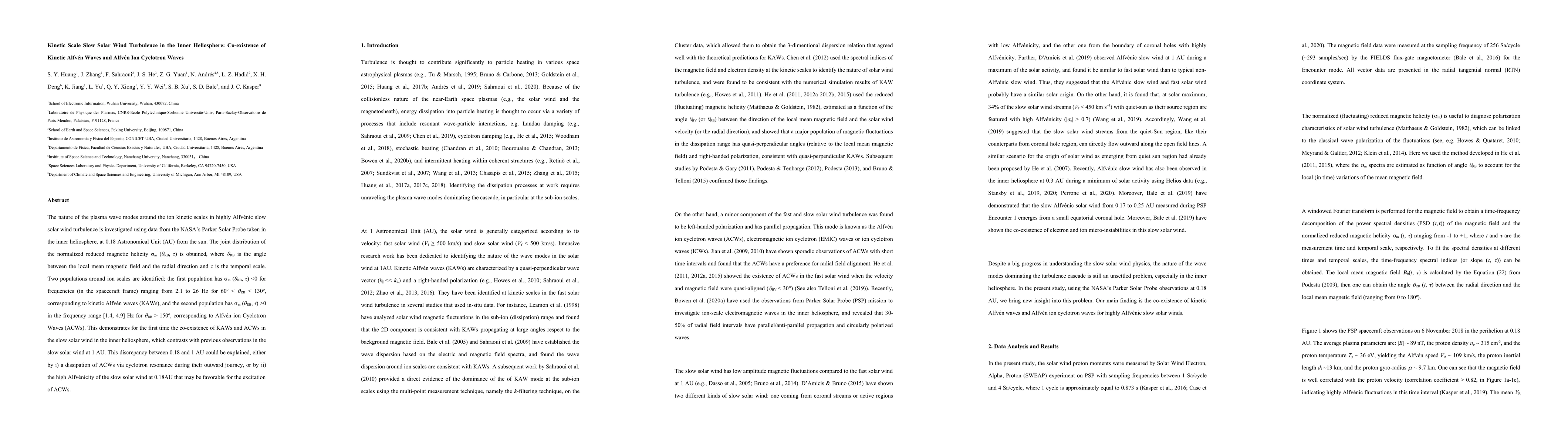 This study investigates the plasma wave modes in the slow solar wind at 0.18 AU using Parker Solar Probe data, identifying two distinct populations: kinetic Alfvén waves and Alfvén ion cyclotron waves. The findings reveal the first co-existence of these waves in the inner heliosphere, contrasting with observations at 1 AU.