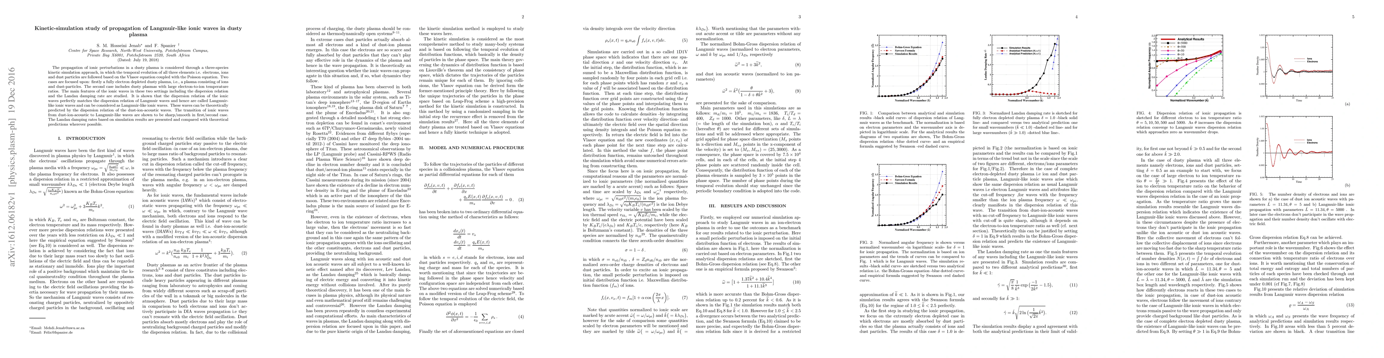 This paper uses kinetic simulations to study the propagation of Langmuir-like ionic waves in dusty plasmas, focusing on two cases: electron-depleted plasmas and those with high electron-to-ion temperature ratios. The results show that these waves match the dispersion relation of Langmuir waves and are theoretically predicted by the dust-ion-acoustic wave dispersion relation.