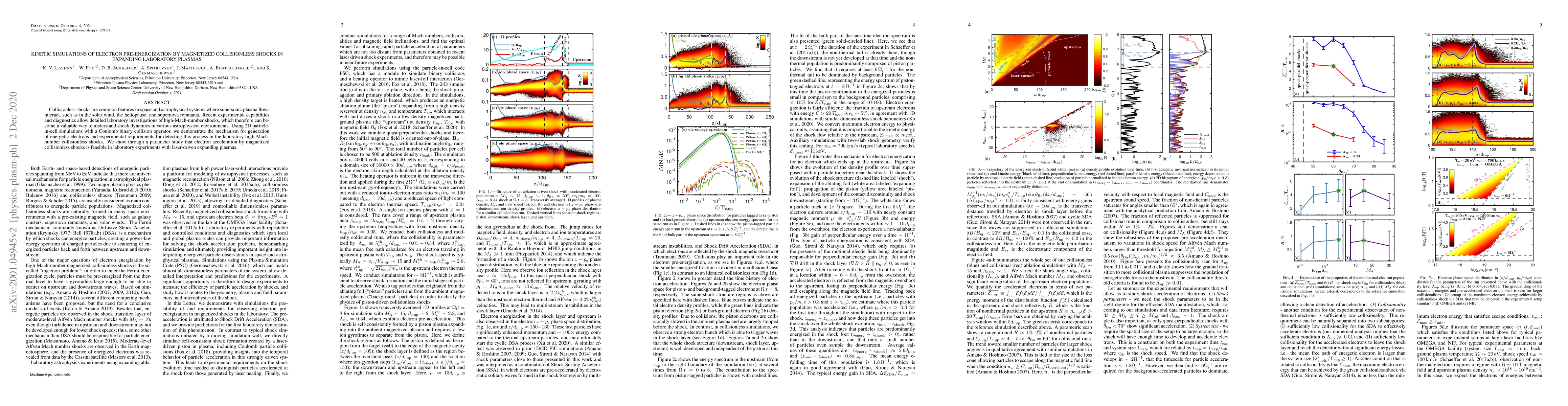 This paper uses 2D particle-in-cell simulations to investigate electron pre-energization by magnetized collisionless shocks in expanding laboratory plasmas. The study demonstrates the mechanism for generating energetic electrons in high-Mach-number shocks and identifies experimental requirements for detecting this process in laboratory settings.