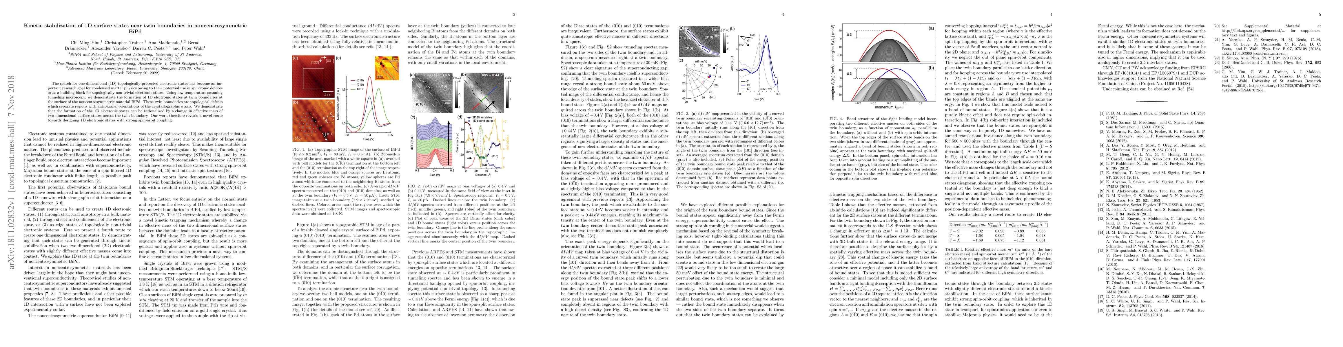 This paper demonstrates the formation of 1D topologically-protected electronic states at twin boundaries in noncentrosymmetric BiPd using low-temperature scanning tunneling microscopy. The study reveals a kinetic stabilization mechanism involving a change in effective mass of two-dimensional surface states, offering a new approach to designing 1D states with strong spin-orbit coupling.