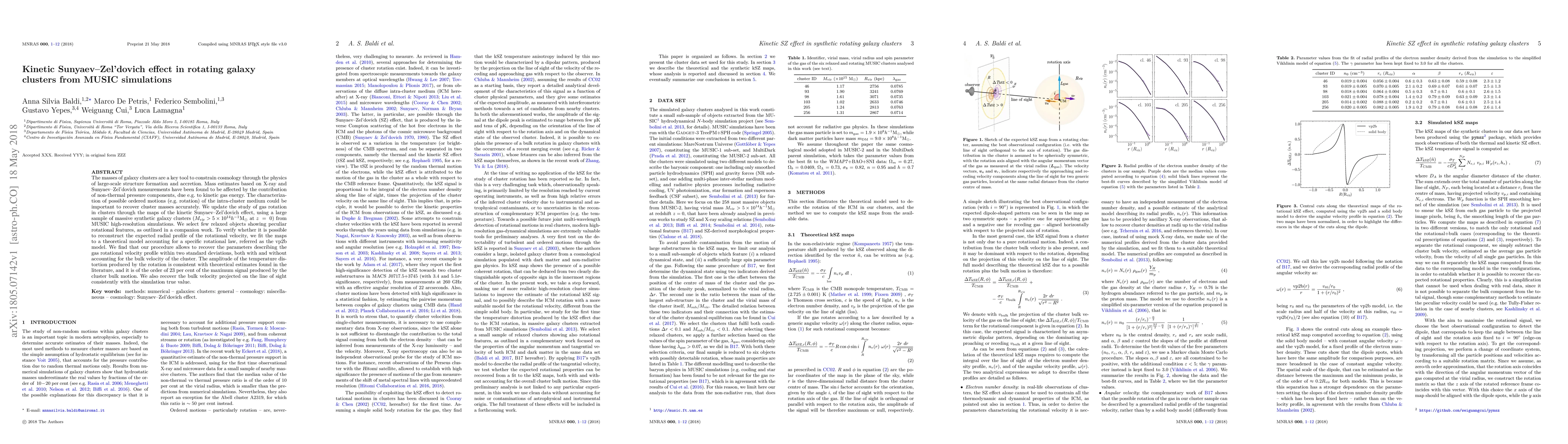 This study investigates the kinetic Sunyaev-Zel'dovich effect in rotating galaxy clusters from MUSIC simulations to better constrain cluster masses. The analysis reveals that the method can accurately reconstruct gas rotational velocity profiles and bulk velocities, with temperature distortions due to rotation at about 23% of the cluster's bulk motion signal.