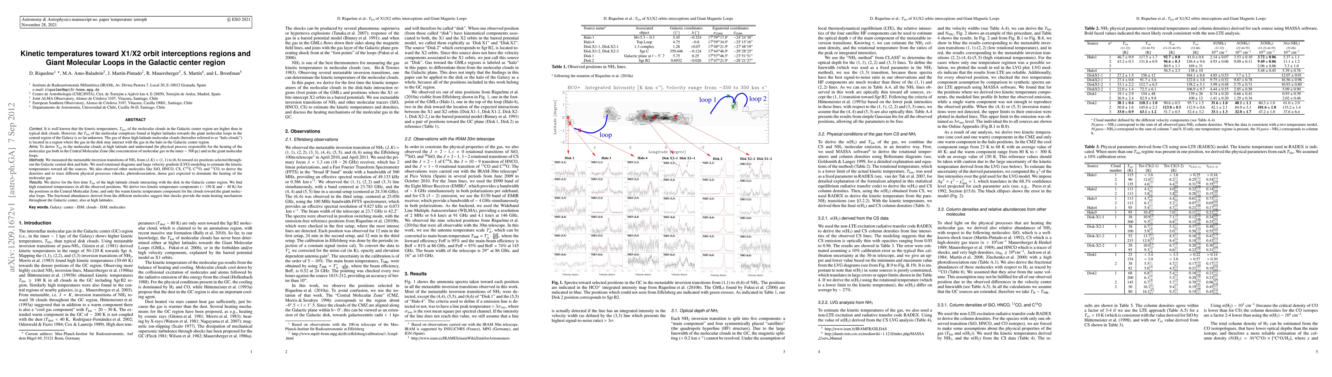 The study measured metastable inversion transitions of NH3 from (1,1) to (6,6) toward six positions in the Galactic center region, using rotational diagrams and large velocity gradient modeling to estimate kinetic temperatures. Other molecules like SiO, HNCO, CS, C34S, C18O, and 13CO were also observed to derive densities and trace physical processes affecting molecular gas heating.