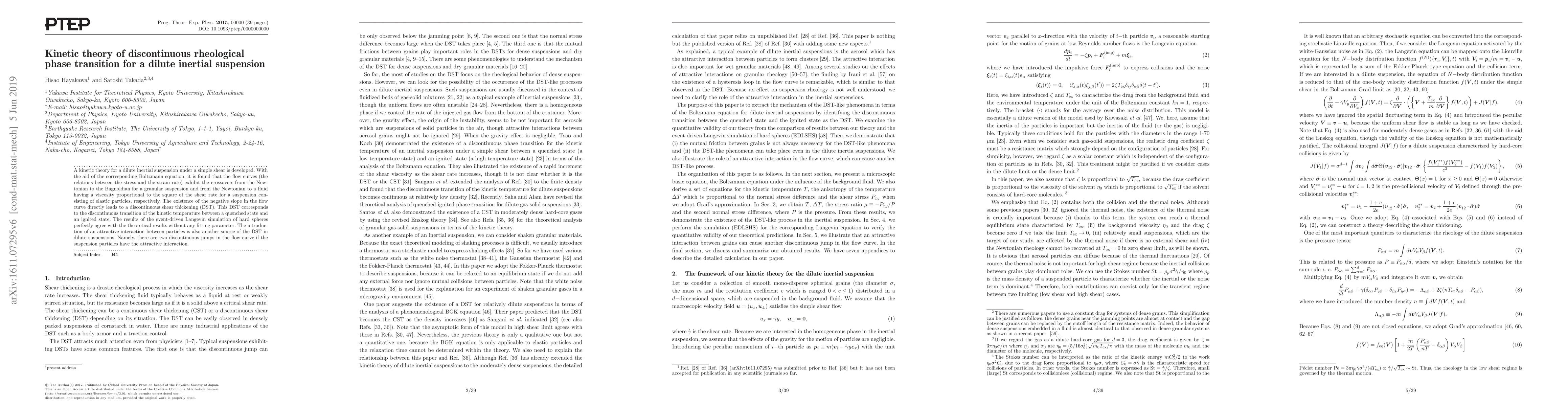 This paper develops a kinetic theory for dilute gas-solid suspensions under shear, revealing an S-shaped flow curve leading to discontinuous shear thickening. The theory aligns with event-driven Langevin simulations, confirming the transition in the linearly unstable shear region.