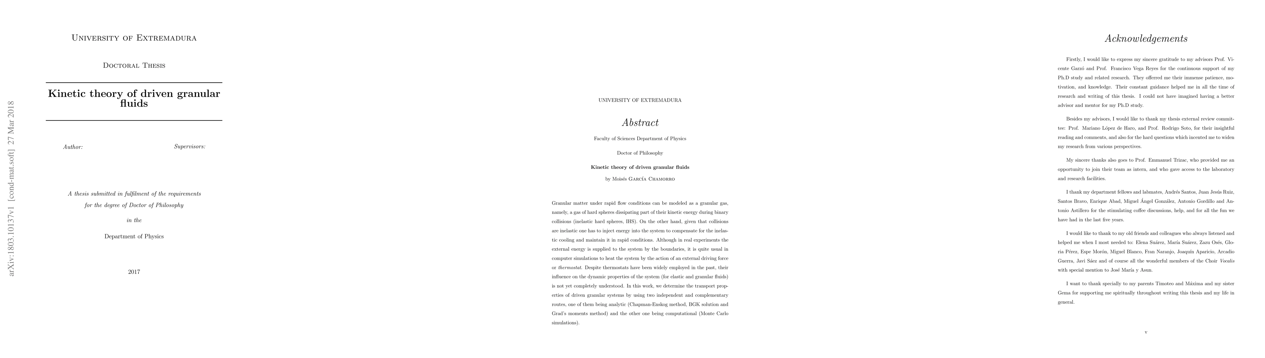 This paper investigates the kinetic theory of driven granular fluids, focusing on the transport properties of inelastic hard spheres under rapid flow conditions. It employs both analytical methods and Monte Carlo simulations to understand the effects of external driving forces or thermostats on the dynamics of granular systems.