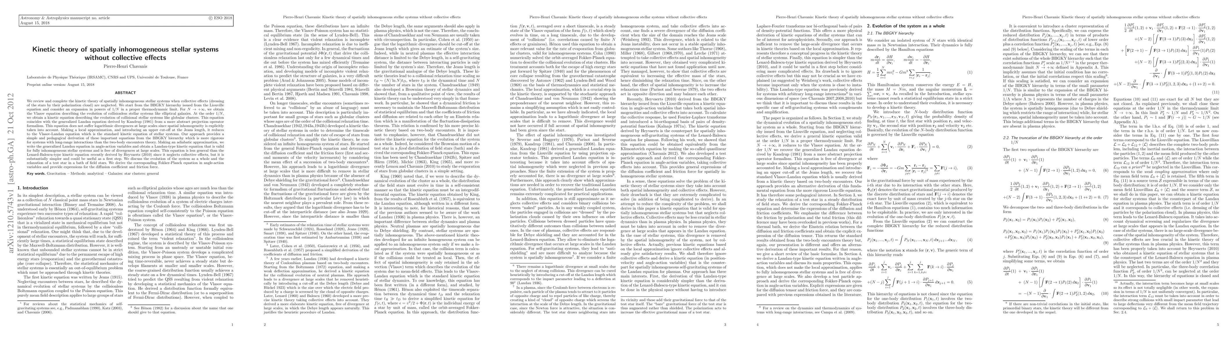 This research paper develops a kinetic theory for spatially inhomogeneous stellar systems without collective effects, deriving equations that describe the evolution of collisionless and collisional systems without logarithmic divergences at large scales.