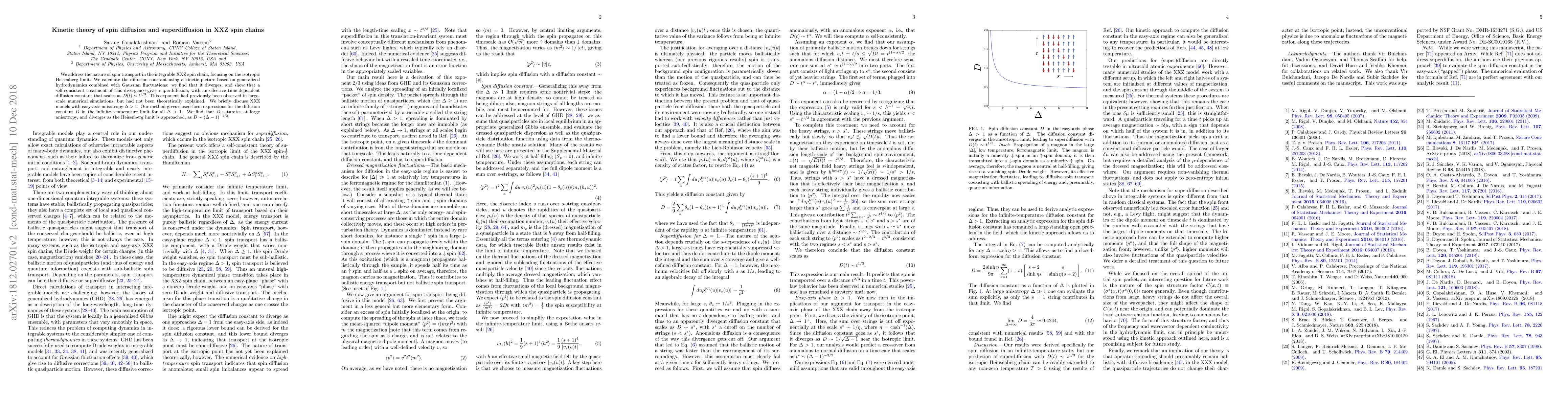 This paper investigates spin transport in XXZ spin chains, revealing superdiffusion with a time-dependent diffusion constant scaling as $D(t) \sim t^{1/3}$. The study combines generalized hydrodynamics and Gaussian fluctuations to explain this behavior, previously observed only in simulations.