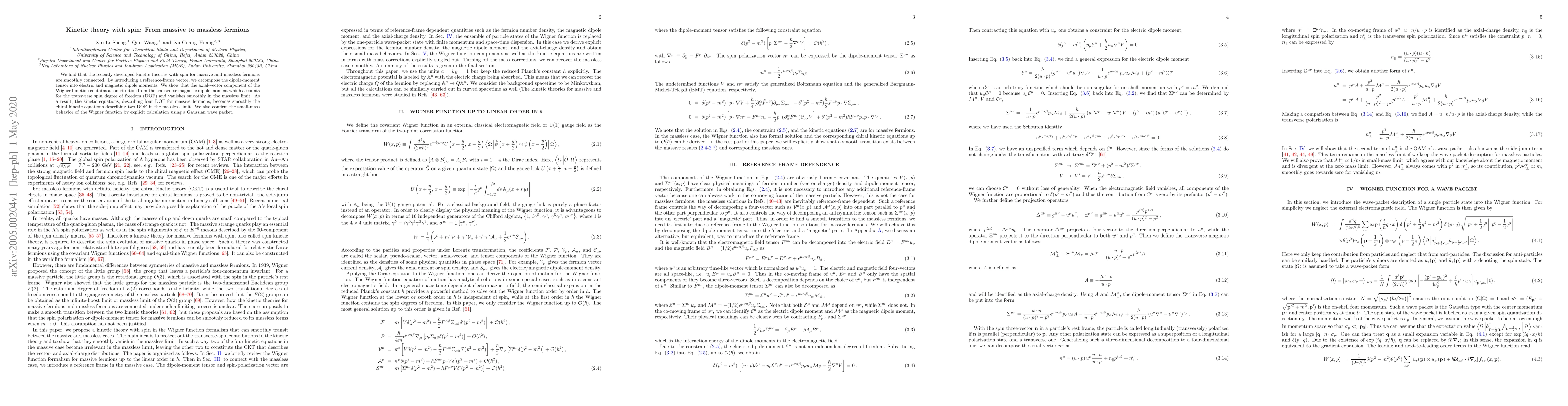 We find that the recently developed kinetic theories with spin for massive and massless fermions are smoothly connected. By introducing a reference-frame vector, we decompose the dipole-moment tensor into electric and magnetic dipole moments. We show that the axial-vector component of the Wigner function contains a contribution from the transverse magnetic dipole moment which accounts for the transverse spin degree of freedom (DOF) and vanishes smoothly in the massless limit. As a result, the kinetic equations, describing four DOF for massive fermions, becomes smoothly the chiral kinetic equations describing two DOF in the massless limit. We also confirm the small-mass behavior of the Wigner function by explicit calculation using a Gaussian wave packet.