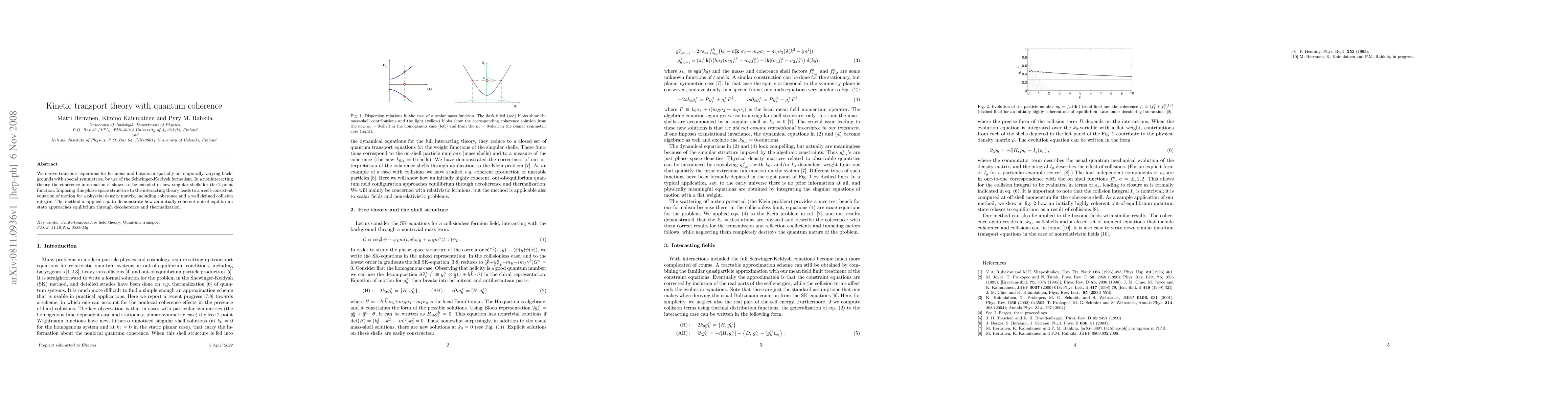 We derive transport equations for fermions and bosons in spatially or temporally varying backgrounds with special symmetries, by use of the Schwinger-Keldysh formalism. In a noninteracting theory the coherence information is shown to be encoded in new singular shells for the 2-point function. Imposing this phase space structure to the interacting theory leads to a a self-consistent equation of motion for a physcial density matrix, including coherence and a well defined collision integral. The method is applied e.g. to demonstrate how an initially coherent out-of-equlibrium state approaches equlibrium through decoherence and thermalization.