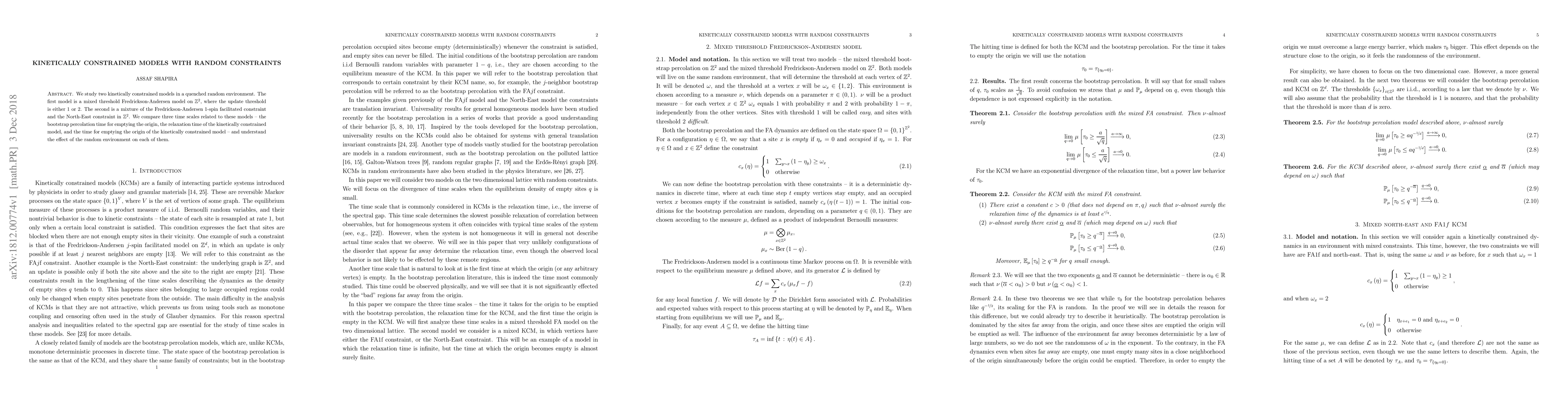 The research employs kinetically constrained models (KCMs) with random constraints on $\mathbb{Z}^{2}$ to study two specific models: a mixed threshold Fredrickson-Andersen model and a mixture of the Fredrickson-Andersen 1-spin facilitated constraint with the North-East constraint.