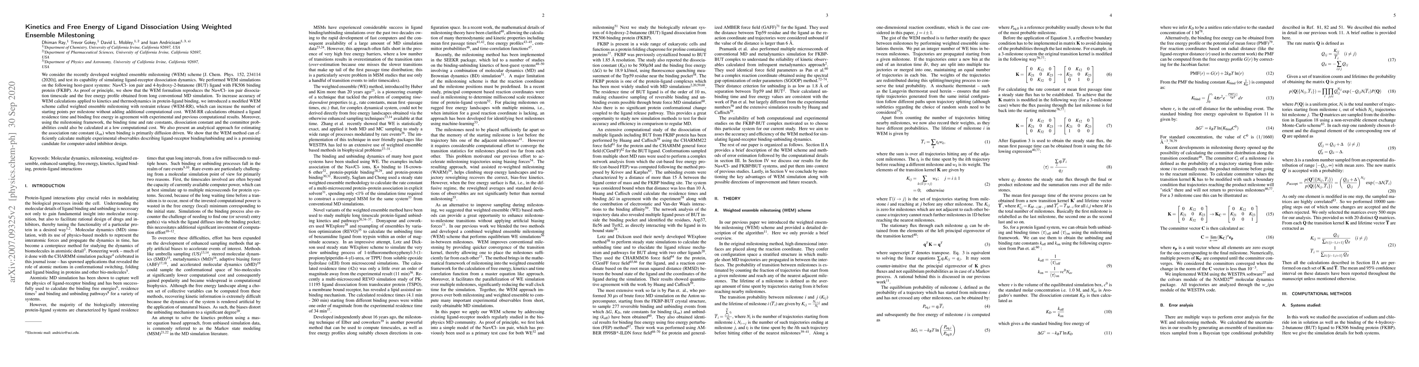 This paper evaluates the weighted ensemble milestoning (WEM) method for simulating ligand-receptor dissociation dynamics, demonstrating its accuracy through host-guest systems like Na$^+$/Cl$^-$ and BUT/FKBP. A modified WEM-RR scheme enhances accuracy without extra computational cost, successfully predicting dissociation timescales, free energy profiles, and binding parameters in agreement with experimental data.