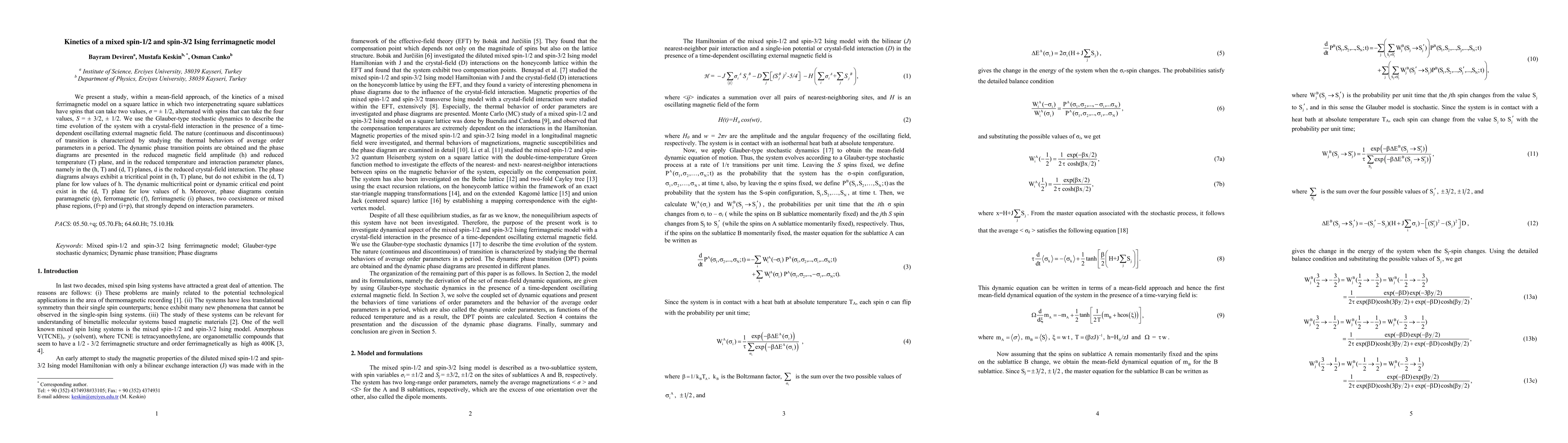 A study investigates the kinetics of a mixed spin-1/2 and spin-3/2 Ising ferrimagnetic model on a square lattice, revealing dynamic phase transitions and tricritical points in phase diagrams that depend on interaction parameters and reduced magnetic field amplitude.