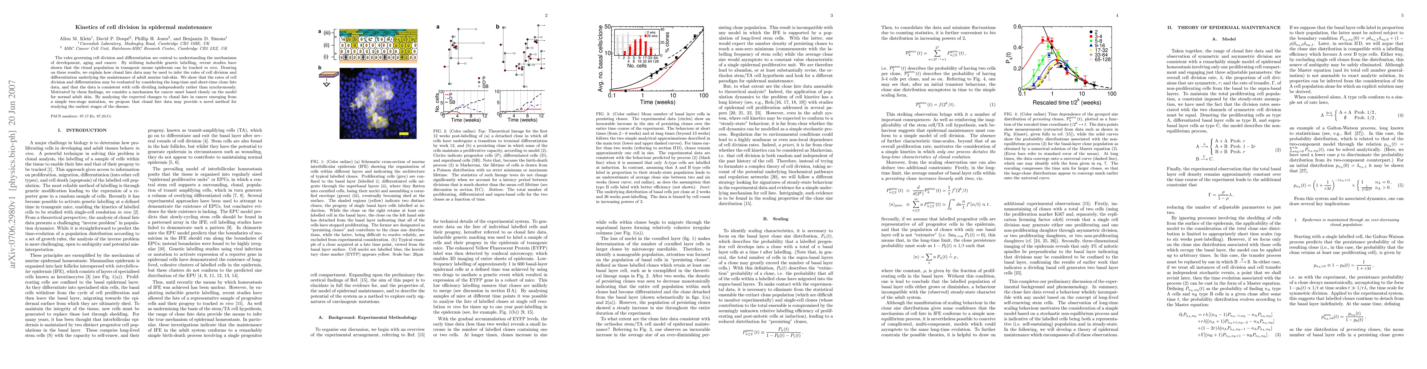 The rules governing cell division and differentiation are central to understanding the mechanisms of development, aging and cancer. By utilising inducible genetic labelling, recent studies have shown that the clonal population in transgenic mouse epidermis can be tracked in vivo. Drawing on these results, we explain how clonal fate data may be used to infer the rules of cell division and differentiation underlying the maintenance of adult murine tail-skin. We show that the rates of cell division and differentiation may be evaluated by considering the long-time and short-time clone fate data, and that the data is consistent with cells dividing independently rather than synchronously. Motivated by these findings, we consider a mechanism for cancer onset based closely on the model for normal adult skin. By analysing the expected changes to clonal fate in cancer emerging from a simple two-stage mutation, we propose that clonal fate data may provide a novel method for studying the earliest stages of the disease.