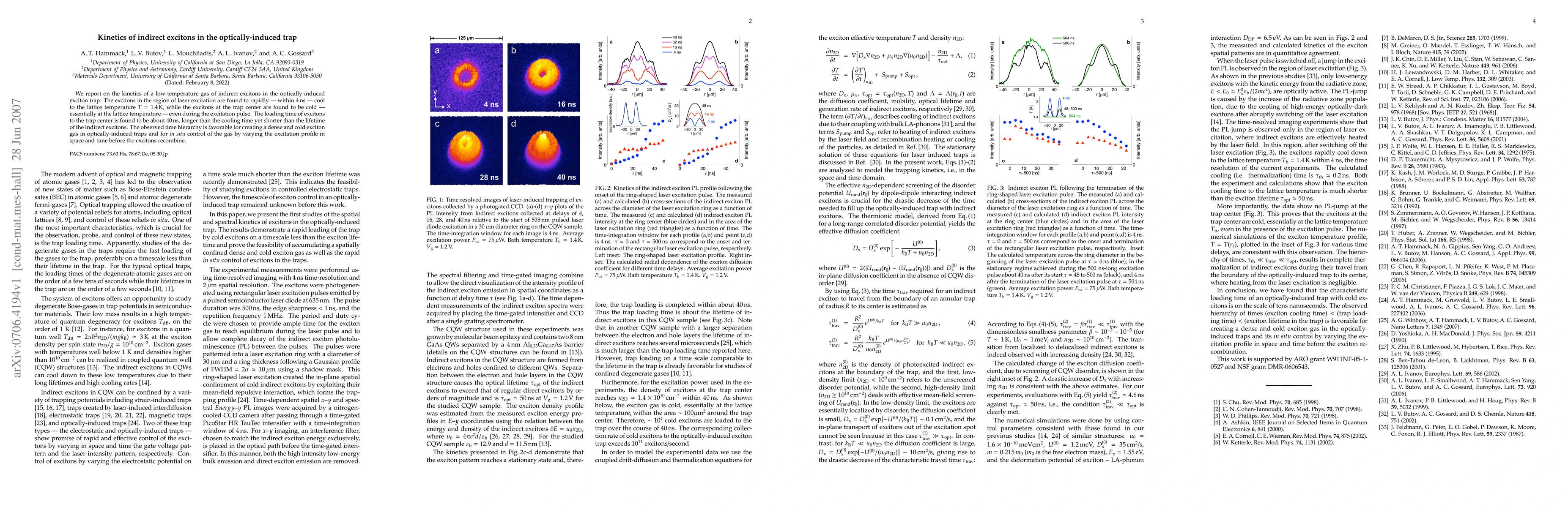 The paper investigates the rapid cooling of indirect excitons in an optically-induced exciton trap at low temperatures, observing excitons cool within 4 ns to lattice temperature, while those at the trap center remain cold during excitation pulses. The excitons load into the trap in about 40 ns, providing a favorable time hierarchy for creating a dense, cold exciton gas and enabling in situ control before recombination.