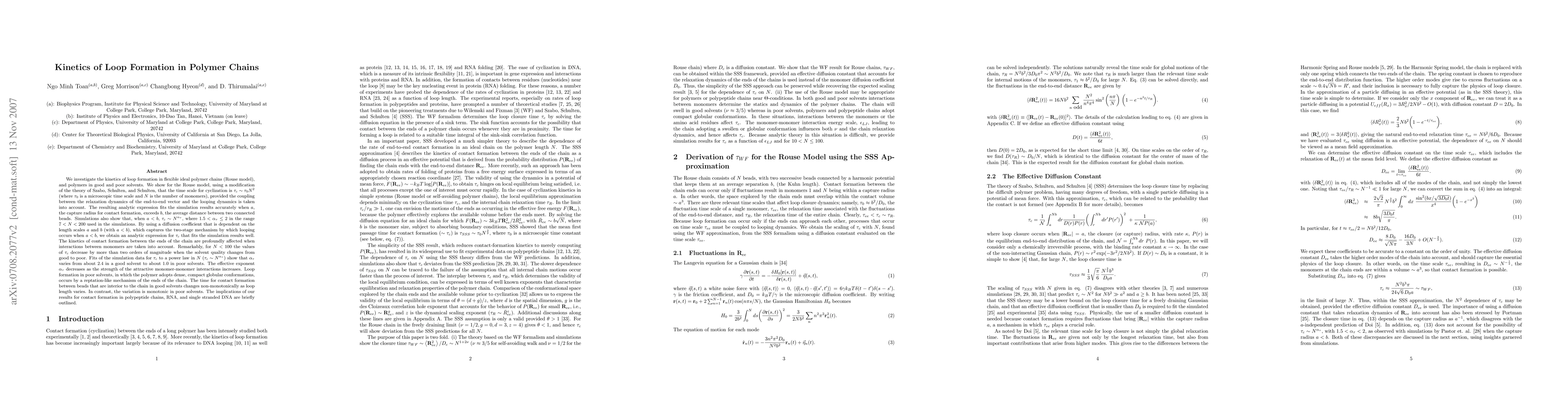 Schulten, that the time scale for cyclization is $\tau_c\sim \tau_0 N^2$ (where