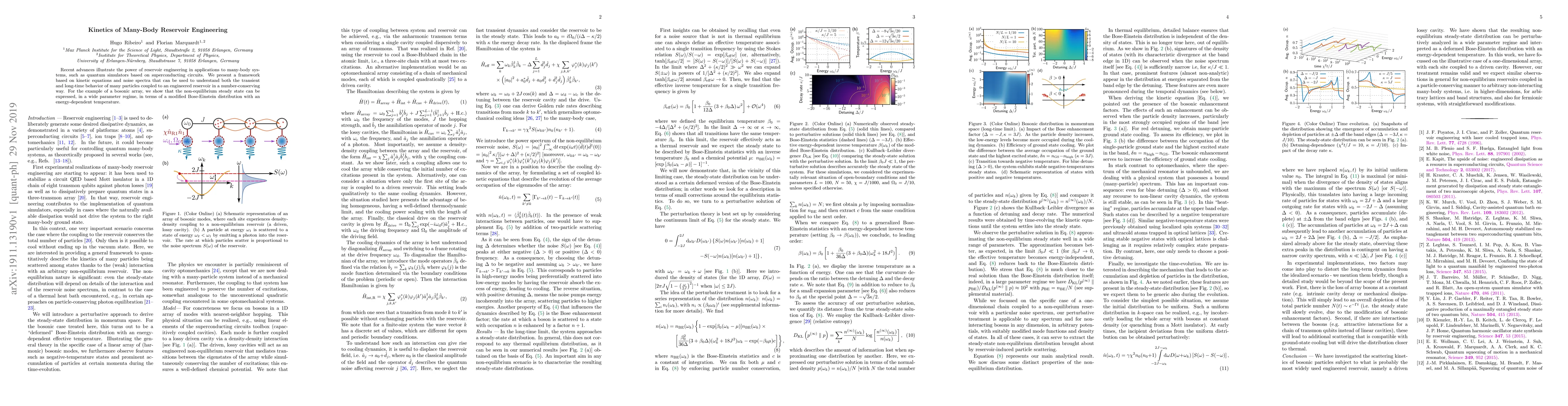 This paper introduces a framework for understanding the dynamics of many-body systems through reservoir engineering, using kinetic equations and noise spectra. It demonstrates that a bosonic array's non-equilibrium steady state can be described by a modified Bose-Einstein distribution with an energy-dependent temperature.
