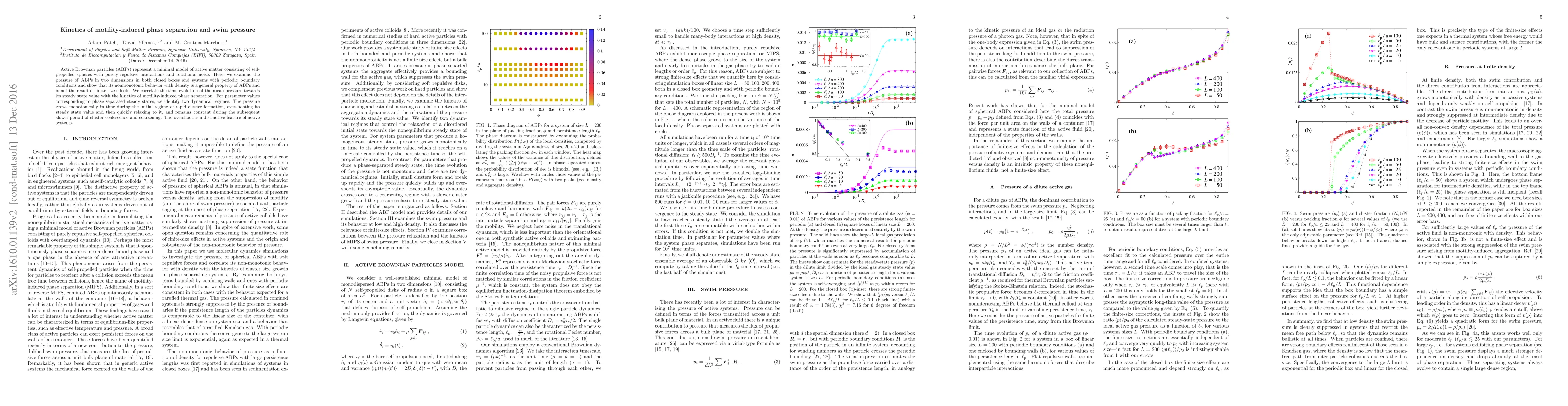 This paper investigates the pressure dynamics of self-propelled active Brownian particles in two dimensions, revealing a nonmonotonic pressure-density relationship. It correlates the pressure evolution to the kinetics of motility-induced phase separation, identifying two distinct dynamical regimes characterized by an overshoot in pressure during cluster formation.