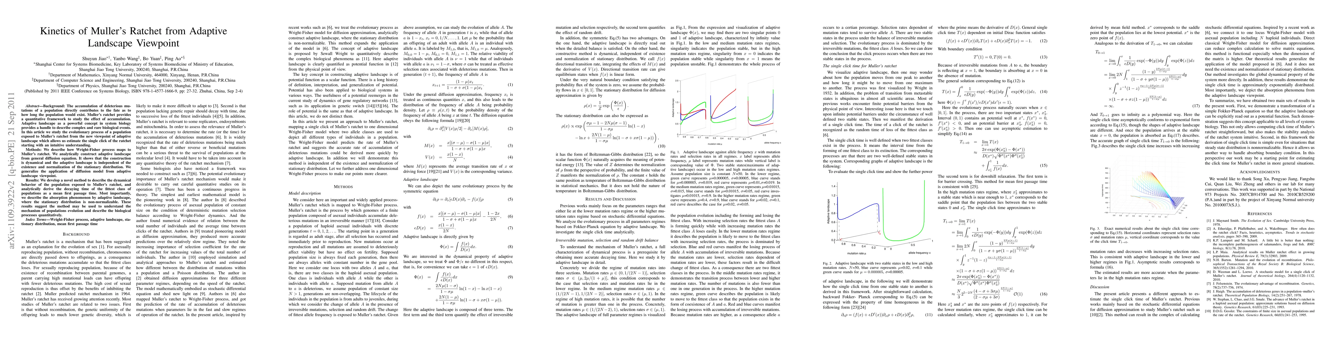 This paper explores the kinetics of Muller's ratchet—a process leading to the accumulation of deleterious mutations—from an adaptive landscape perspective. It develops a novel method to describe the dynamical behavior of populations under Muller's ratchet, analytically deriving the decay time of fittest populations and describing the absorption phenomenon in the adaptive landscape.