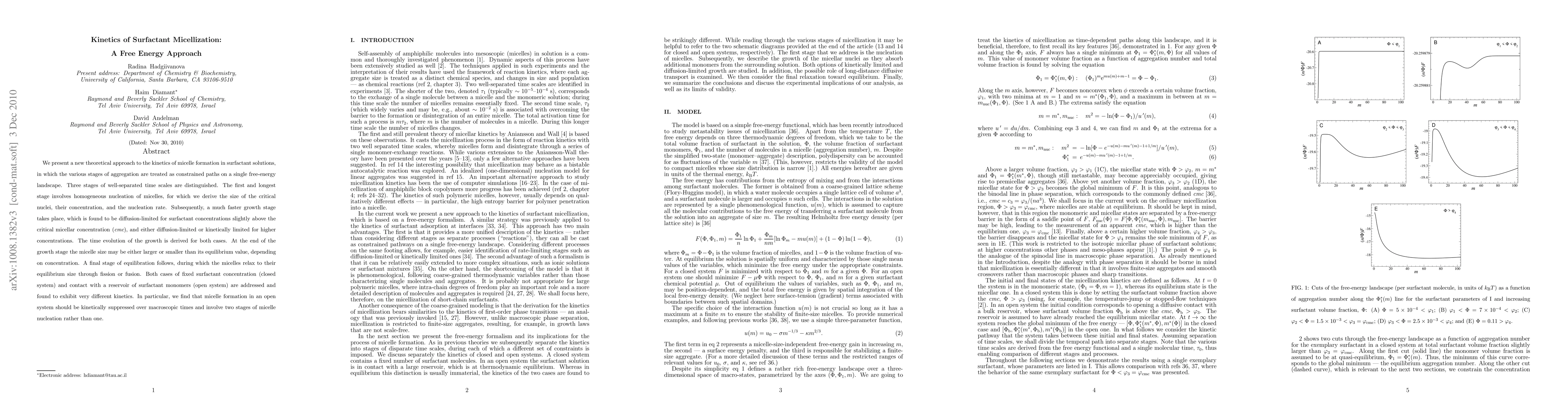 This paper introduces a theoretical framework for understanding the kinetics of micelle formation in surfactant solutions, distinguishing three stages: nucleation, diffusion-limited growth, and equilibration. It finds that micelle formation in open systems is kinetically suppressed and involves two nucleation stages.
