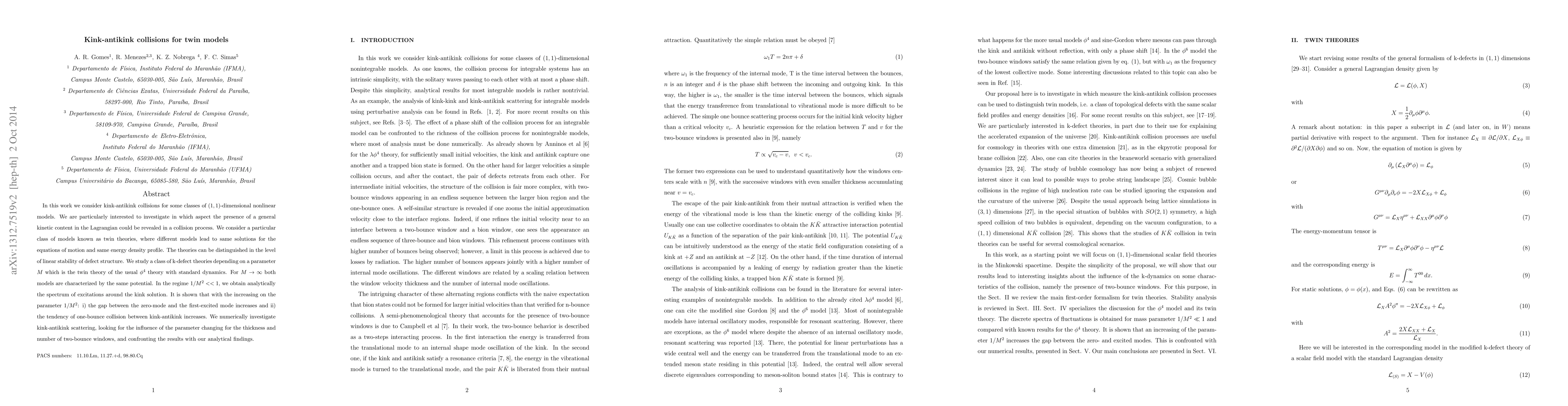 This research contributes to our understanding of kink-antikink collisions and their implications for twin theories.