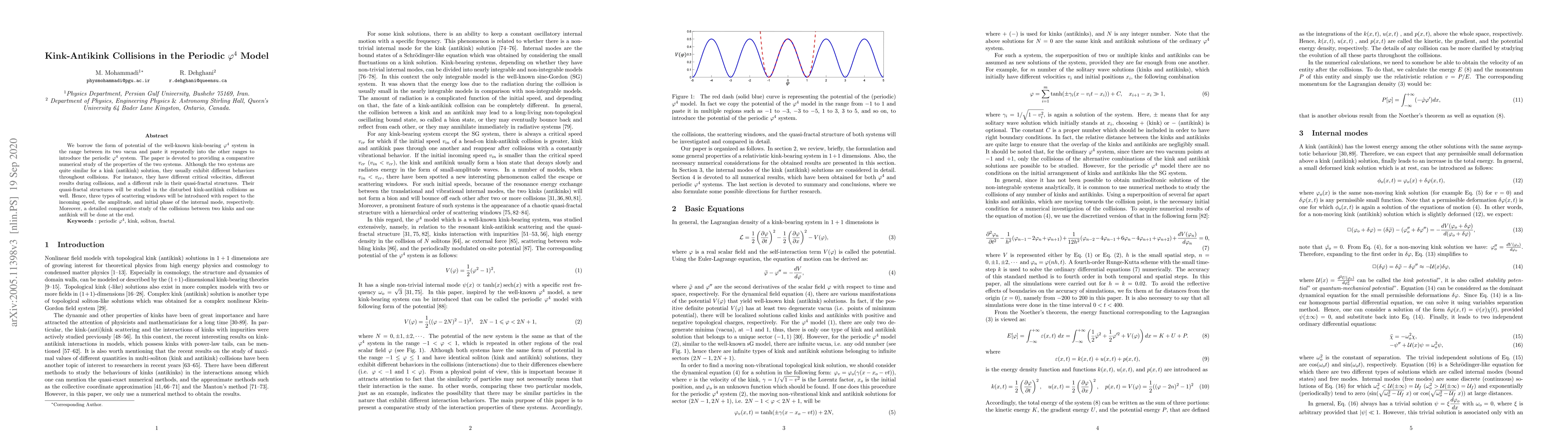 This paper investigates the periodic $\varphi^{4}$ model, comparing its kink-antikink collision properties to the standard $\varphi^{4}$ system. It reveals distinct behaviors in critical velocities, collision outcomes, and quasi-fractal structures, introducing three scattering windows based on speed, amplitude, and phase. A detailed analysis of kink-antikink and kink-kink collisions concludes the study.