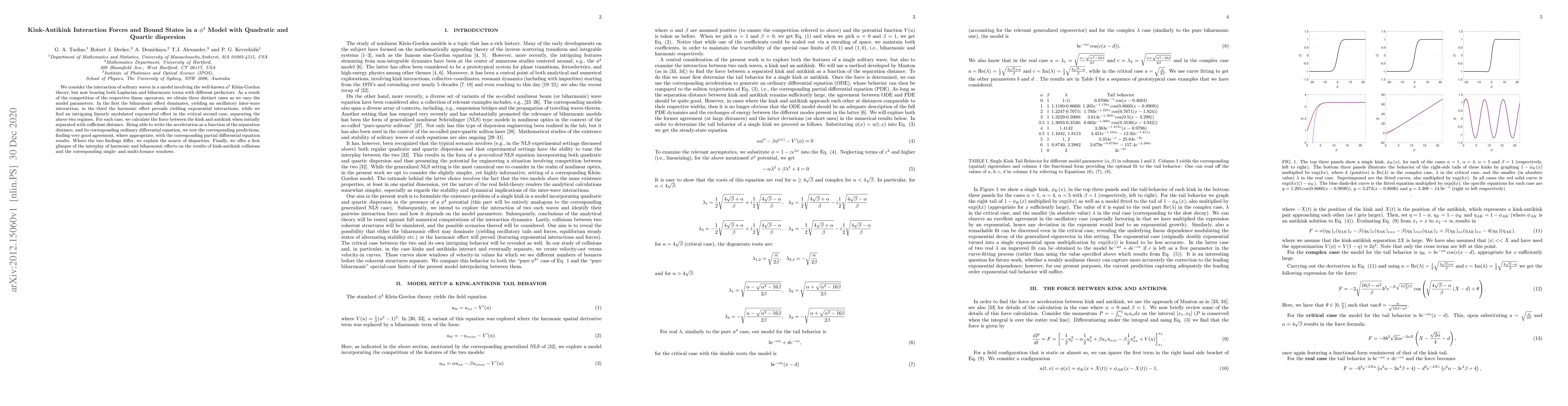 This paper investigates the interaction forces between kink and antikink solitary waves in a $\phi^4$ Klein-Gordon model with both Laplacian and biharmonic terms, leading to three distinct interaction regimes. The study finds good agreement between calculated forces and partial differential equation results, offering insights into the dynamics of kink-antikink collisions.