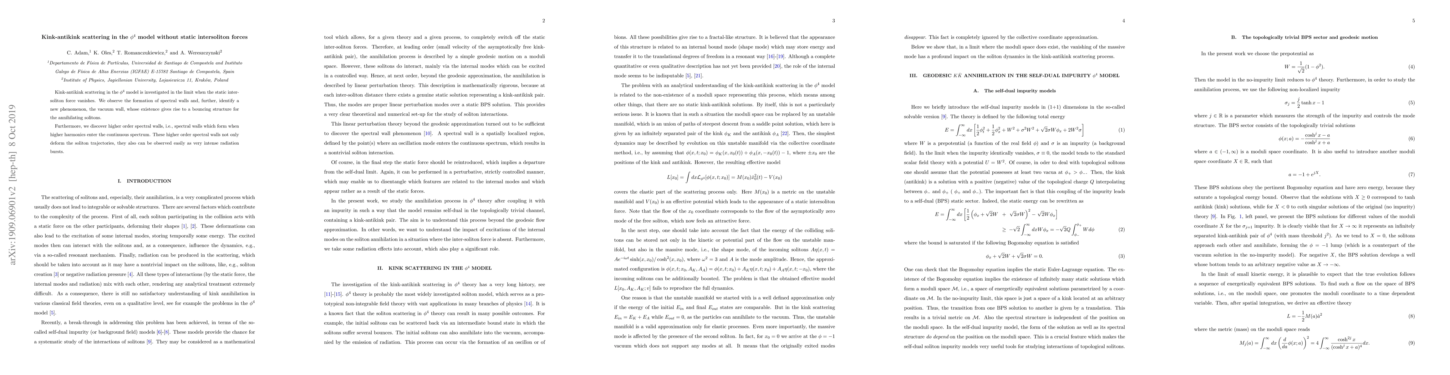 Summary: This study examines kink-antikink scattering in the $\phi^4$ model without static intersoliton forces, revealing the formation of spectral walls and a new vacuum wall phenomenon. It also identifies higher order spectral walls that cause soliton trajectory deformation and intense radiation bursts.