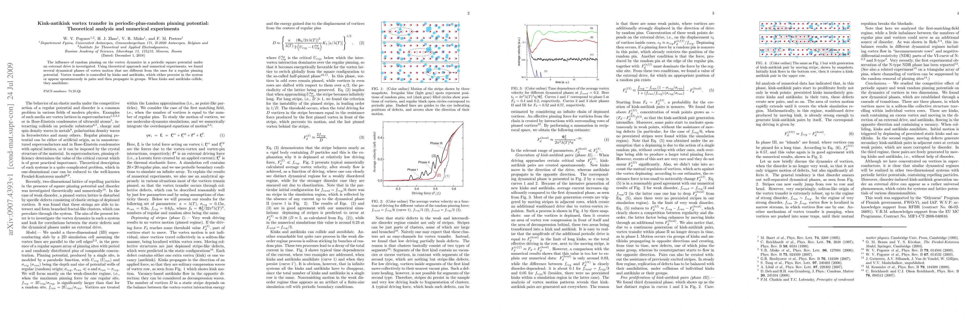 The influence of random pinning on the vortex dynamics in a periodic square potential under an external drive is investigated. Using theoretical approach and numerical experiments, we found several dynamical phases of vortex motion that are different from the ones for a regular pinning potential. Vortex transfer is controlled by kinks and antikinks, which either preexist in the system or appear spontaneously in pairs and then propagate in groups. When kinks and antikinks collide, they annihilate.