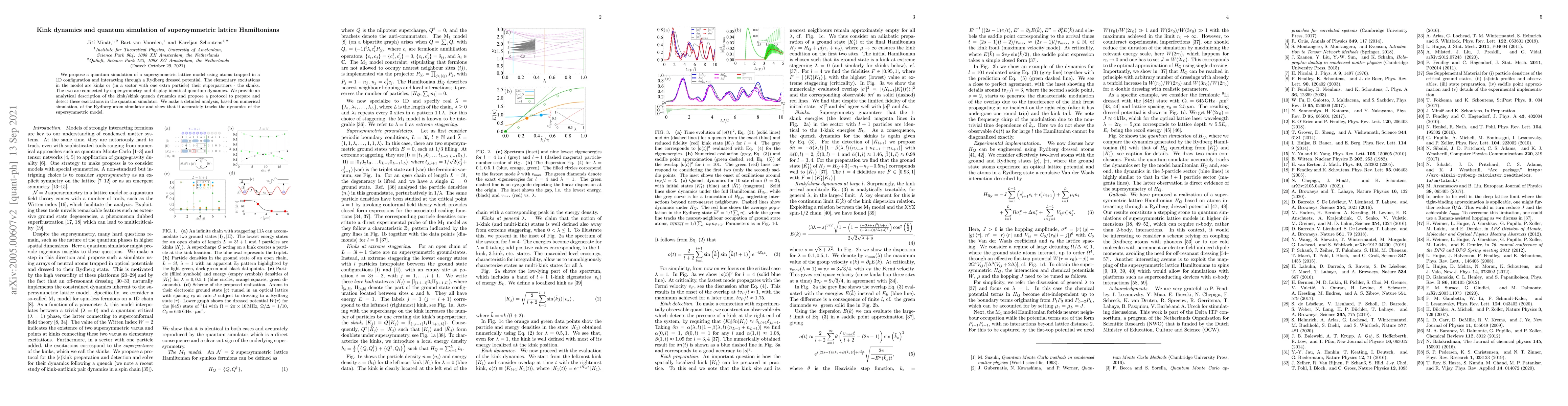 This paper proposes a quantum simulation of supersymmetric lattice Hamiltonians using atoms in a 1D configuration, where kinks and skinks, connected by supersymmetry, exhibit identical quantum dynamics. The authors provide a protocol for preparing and detecting these excitations and demonstrate through numerical simulations that the Rydberg atom simulator accurately mimics the dynamics of the supersymmetric model.