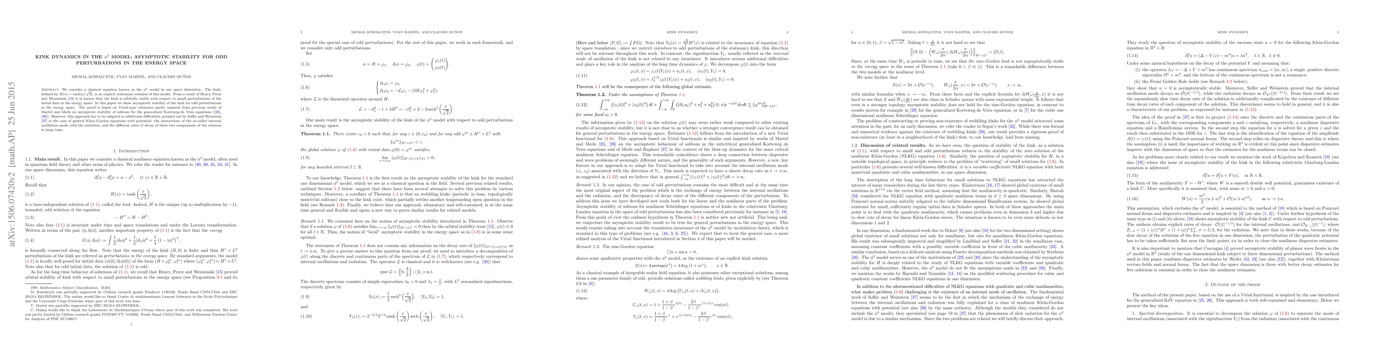 This paper investigates the asymptotic stability of the kink solution in the $\phi^4$ model for odd perturbations in the energy space, extending previous results on small perturbations. The authors adapt Virial-type estimates and techniques from soliton stability studies to address unique challenges in the model, particularly the interaction between internal oscillations and radiation decay rates.