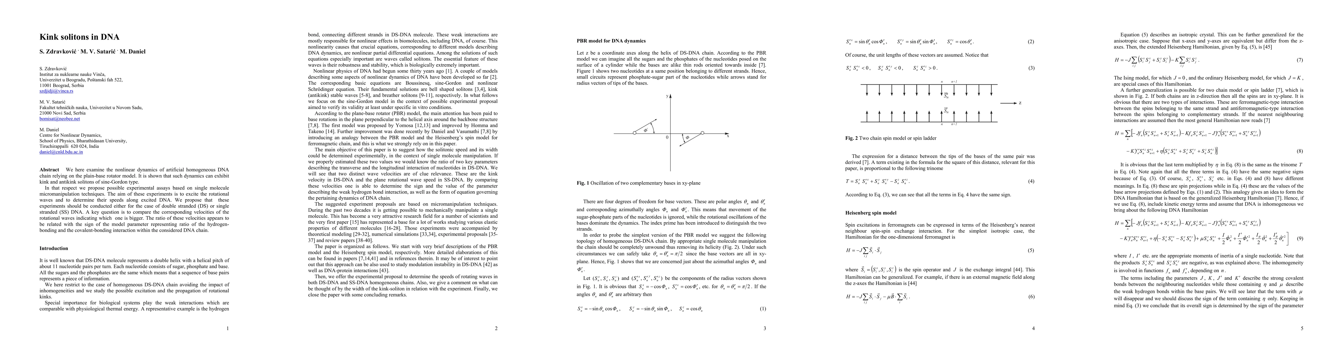 We here examine the nonlinear dynamics of artificial homogeneous DNA chain relying on the plain-base rotator model. It is shown that such dynamics can exhibit kink and antikink solitons of sine-Gordon type. In that respect we propose possible experimental assays based on single molecule micromanipulation techniques. The aim of these experiments is to excite the rotational waves and to determine their speeds along excited DNA. We propose that these experiments should be conducted either for the case of double stranded (DS) or single stranded (SS) DNA. A key question is to compare the corresponding velocities of the rotational waves indicating which one is bigger. The ratio of these velocities appears to be related with the sign of the model parameter representing ratio of the hydrogen-bonding and the covalent-bonding interaction within the considered DNA chain.