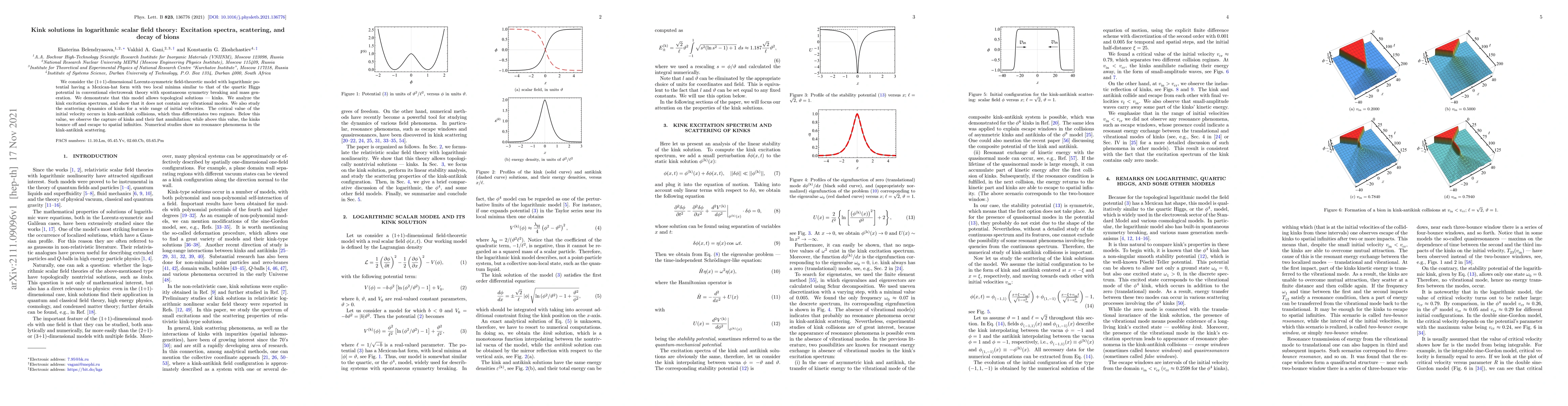 Researchers investigate a new field theory model that produces kink solutions with unique properties, finding no vibrational modes in the excitation spectrum and distinct scattering dynamics depending on initial velocity.