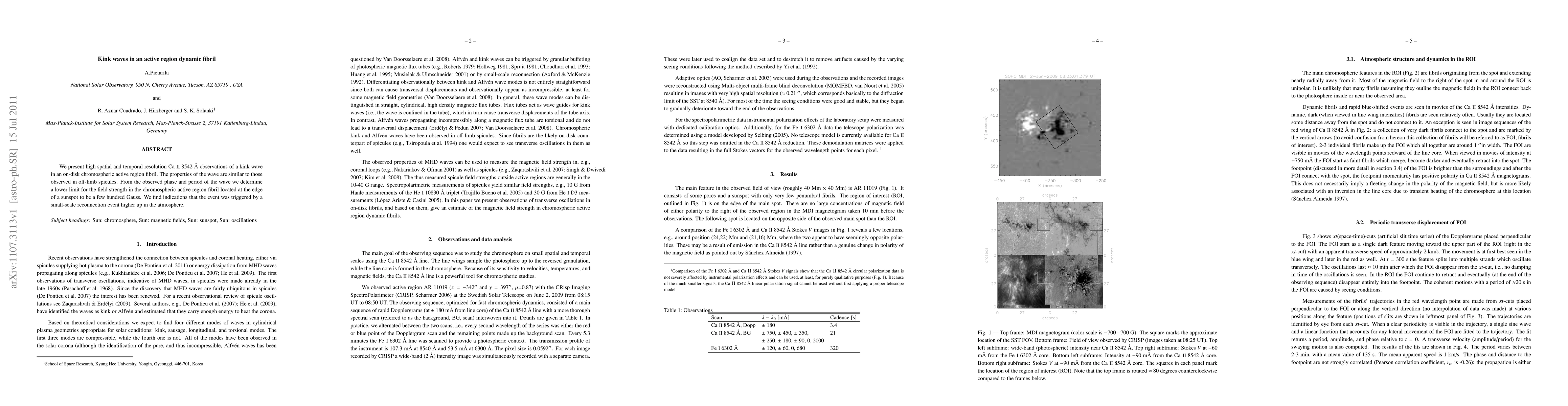 We present high spatial and temporal resolution Ca II 8542 observations of a kink wave in an on-disk chromospheric active region fibril. The properties of the wave are similar to those observed in off-limb spicules. From the observed phase and period of the wave we determine a lower limit for the field strength in the chromospheric active region fibril located at the edge of a sunspot to be a few hundred Gauss. We find indications that the event was triggered by a small-scale reconnection event higher up in the atmosphere.