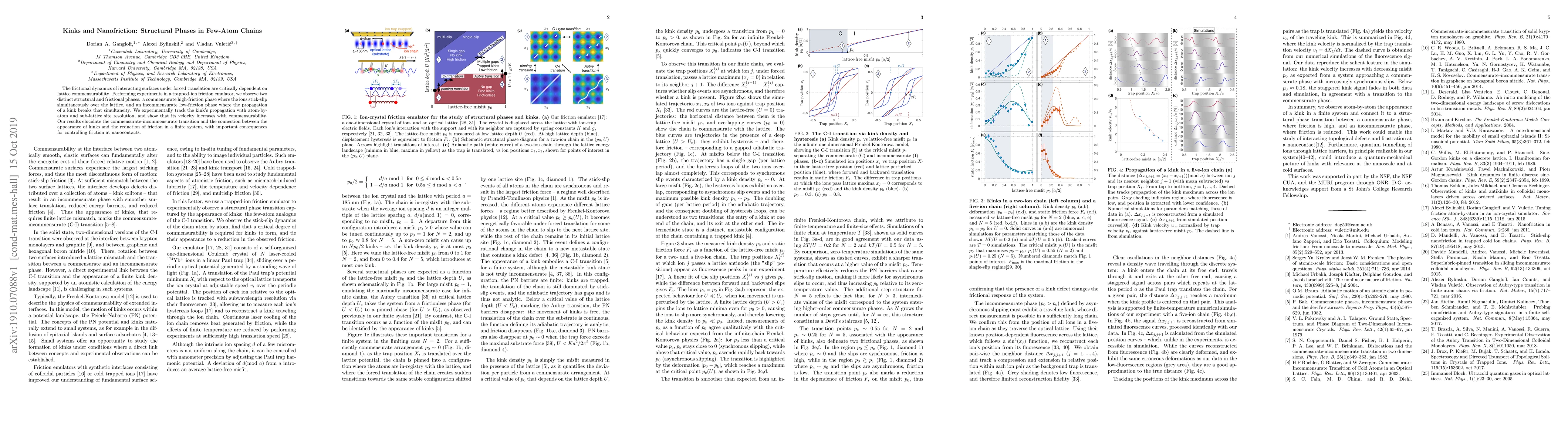 The frictional dynamics of interacting surfaces under forced translation are critically dependent on lattice commensurability. Performing experiments in a trapped-ion friction emulator, we observe two distinct structural and frictional phases: a commensurate high-friction phase where the ions stick-slip simultaneously over the lattice, and an incommensurate low-friction phase where the propagation of a kink breaks that simultaneity. We experimentally track the kink's propagation with atom-by-atom and sub-lattice site resolution, and show that its velocity increases with commensurability. Our results elucidate the commensurate-incommensurate transition and the connection between the appearance of kinks and the reduction of friction in a finite system, with important consequences for controlling friction at nanocontacts.