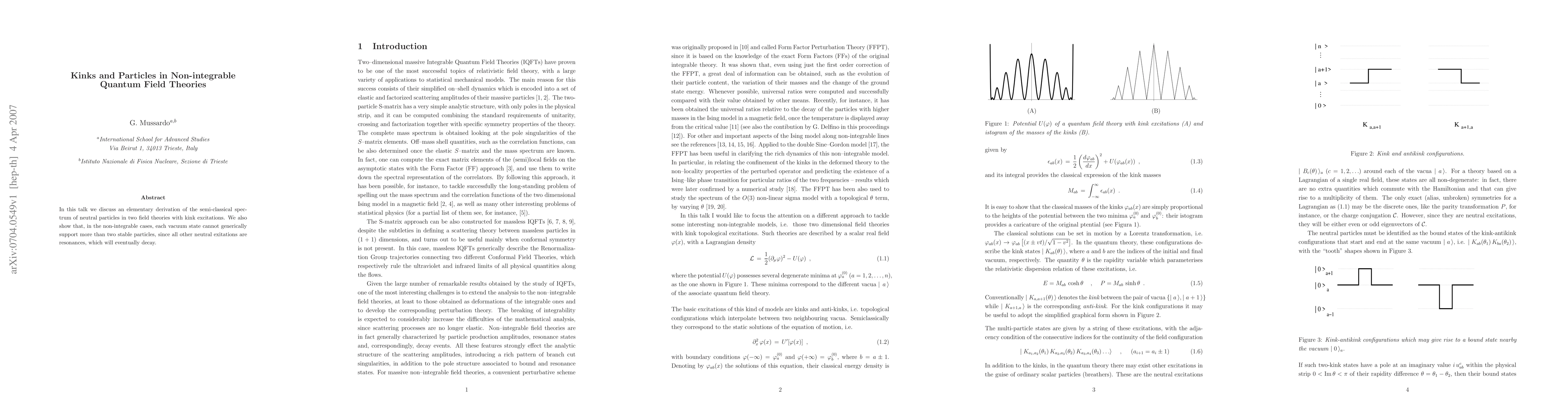 Researchers derived the semi-classical spectrum of neutral particles in non-integrable quantum field theories with kink excitations, finding that each vacuum state can support no more than two stable particles.