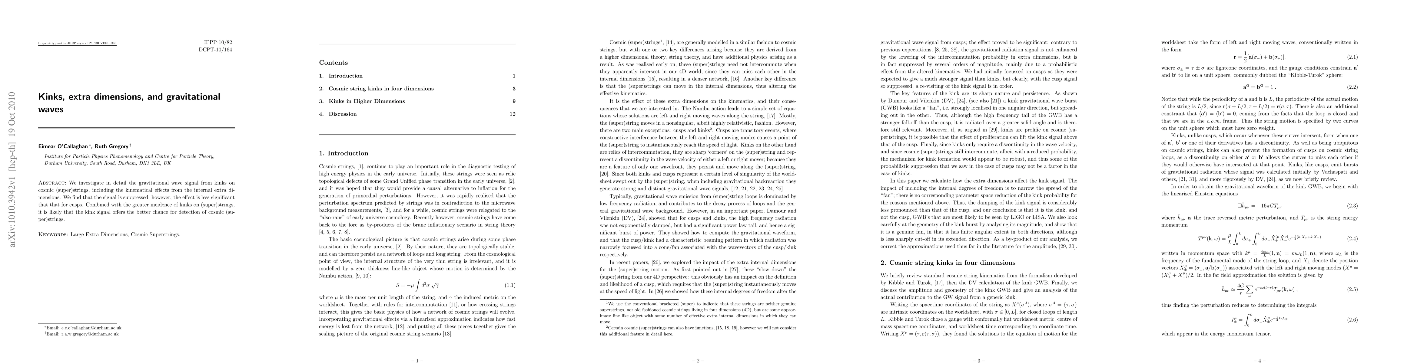 This paper examines the gravitational wave signal generated by kinks on cosmic (super)strings, considering the effects of internal extra dimensions. Despite the signal being suppressed, it concludes that the kink signal, due to its higher occurrence, presents a better detection opportunity for cosmic (super)strings compared to cusps.