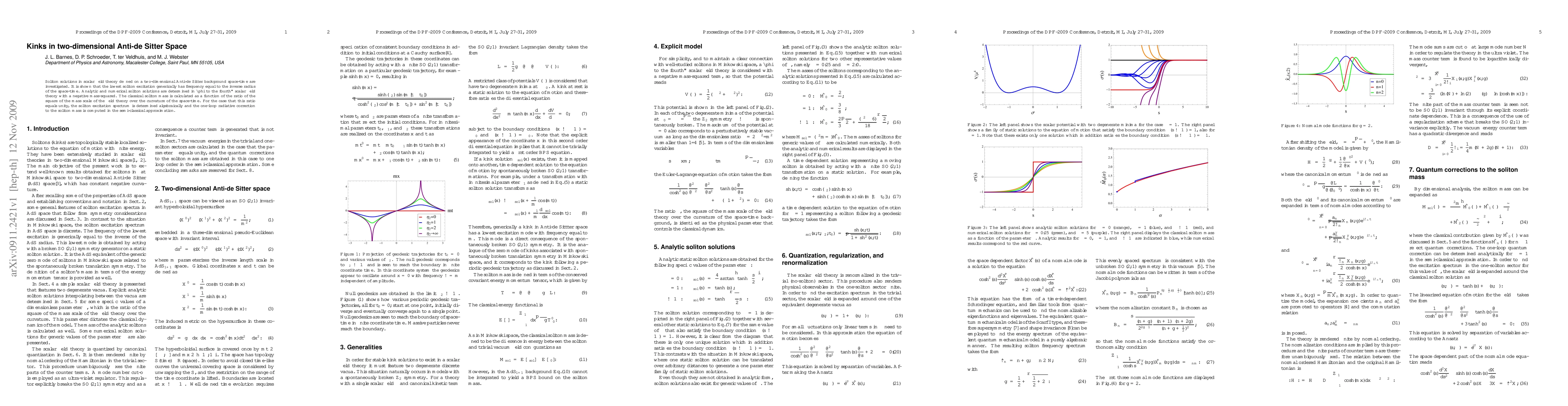 Researchers investigate soliton solutions in a two-dimensional Anti-de Sitter space-time and find that the lowest soliton excitation has a frequency related to the inverse radius of the space-time.
