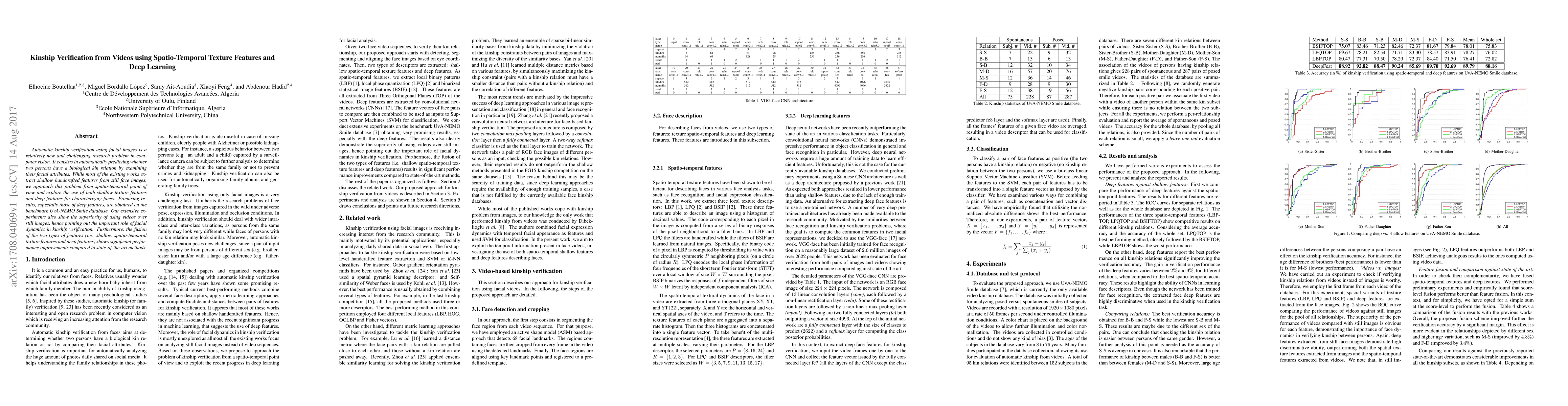 This paper proposes a method for automatic kinship verification using both shallow spatio-temporal texture features and deep learning from video data, demonstrating superior performance over still images and highlighting the importance of facial dynamics. The fusion of these features significantly outperforms existing methods on the UvA-NEMO Smile database.