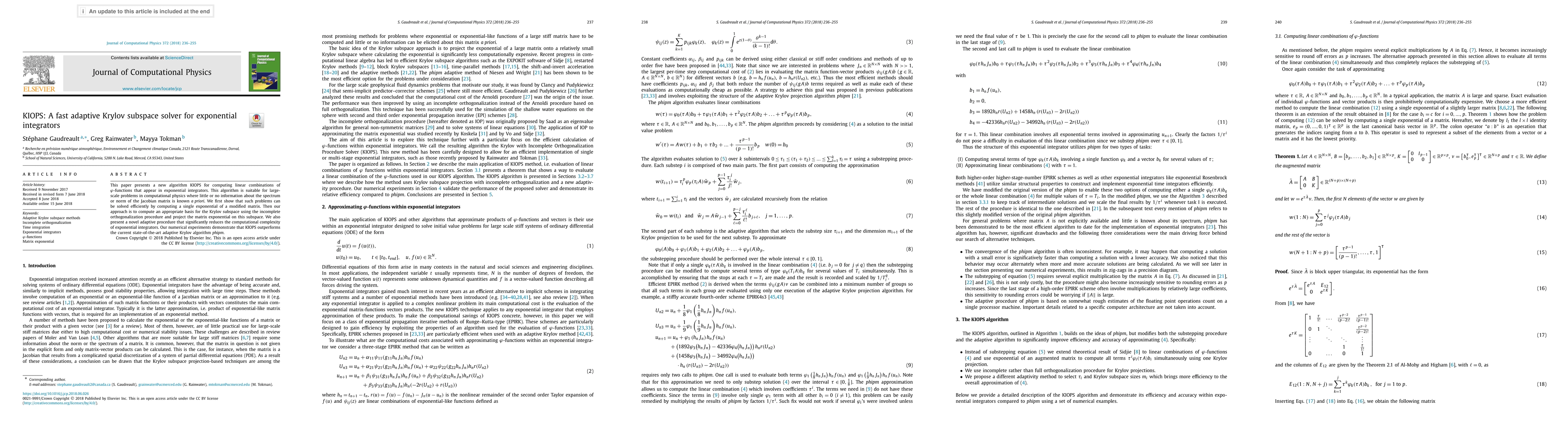 KIOPS is a fast adaptive Krylov subspace solver for exponential integrators, designed for large-scale computational physics problems with unknown Jacobian properties. It efficiently computes matrix exponentials by projecting onto a suitable Krylov subspace and employs an adaptive procedure to reduce computational complexity.