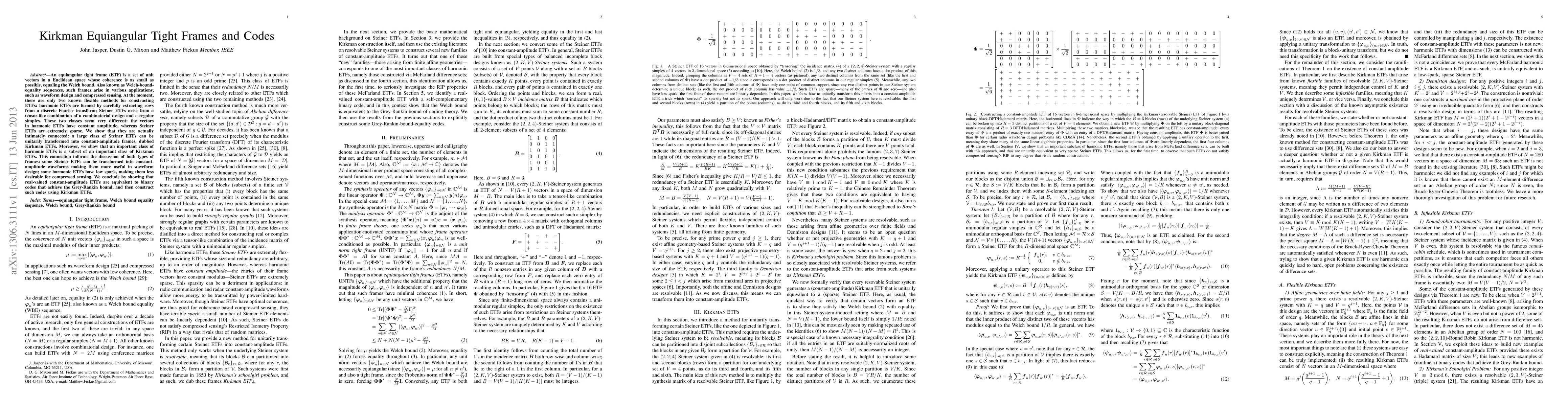 An equiangular tight frame (ETF) is a set of unit vectors in a Euclidean space whose coherence is as small as possible, equaling the Welch bound. Also known as Welch-bound-equality sequences, such frames arise in various applications, such as waveform design and compressed sensing. At the moment, there are only two known flexible methods for constructing ETFs: harmonic ETFs are formed by carefully extracting rows from a discrete Fourier transform; Steiner ETFs arise from a tensor-like combination of a combinatorial design and a regular simplex. These two classes seem very different: the vectors in harmonic ETFs have constant amplitude, whereas Steiner ETFs are extremely sparse. We show that they are actually intimately connected: a large class of Steiner ETFs can be unitarily transformed into constant-amplitude frames, dubbed Kirkman ETFs. Moreover, we show that an important class of harmonic ETFs is a subset of an important class of Kirkman ETFs. This connection informs the discussion of both types of frames: some Steiner ETFs can be transformed into constant-amplitude waveforms making them more useful in waveform design; some harmonic ETFs have low spark, making them less desirable for compressed sensing. We conclude by showing that real-valued constant-amplitude ETFs are equivalent to binary codes that achieve the Grey-Rankin bound, and then construct such codes using Kirkman ETFs.