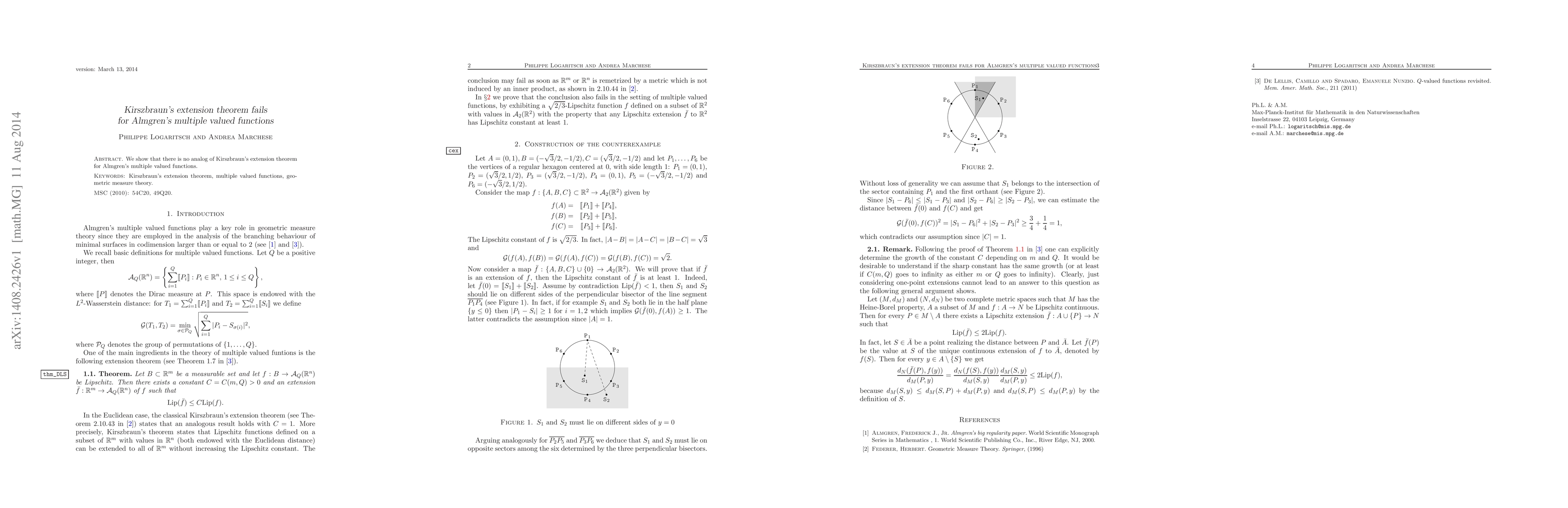 Summary: This paper demonstrates that the extension properties of Kirszbraun's theorem do not apply to Almgren's multiple valued functions, highlighting a fundamental difference in their mathematical behavior.