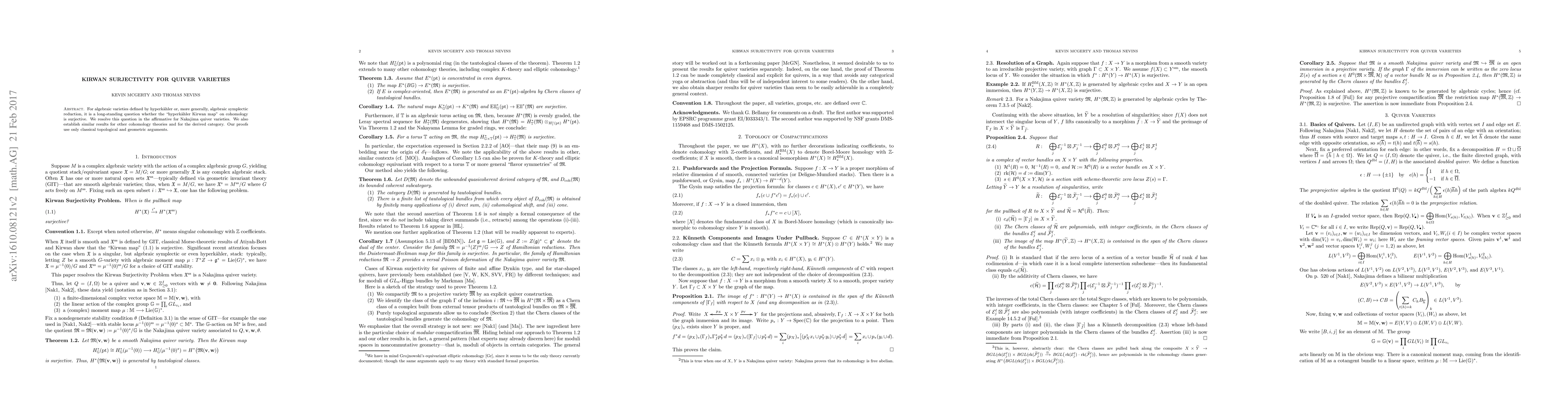 This paper proves the long-standing conjecture of Kirwan surjectivity for Nakajima quiver varieties, confirming the surjectivity of the "hyperkähler Kirwan map" on cohomology. The authors achieve this using classical topological and geometric methods.