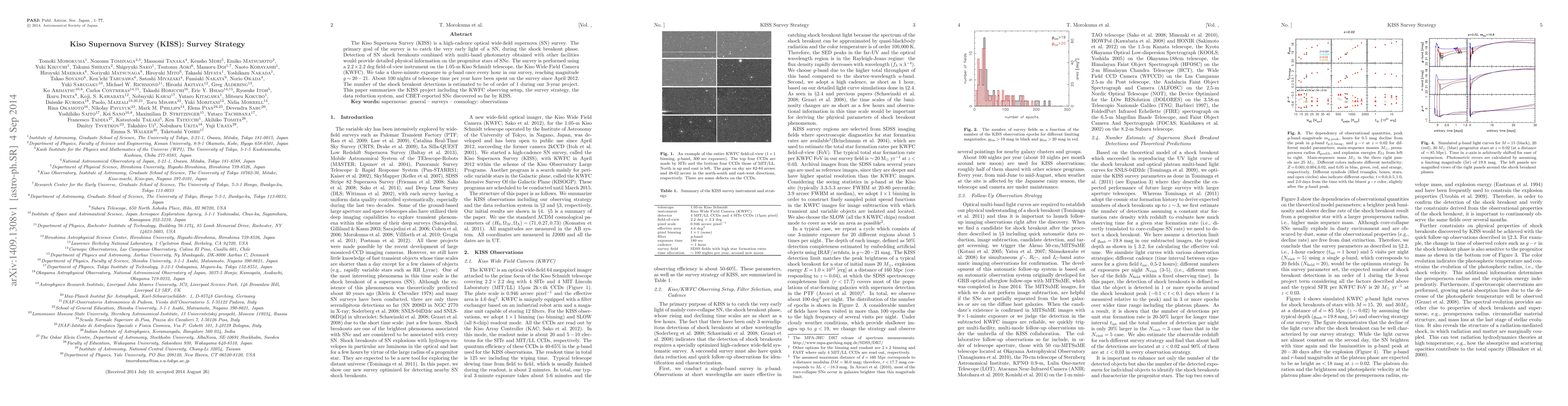 The Kiso Supernova Survey (KISS) uses a high-cadence optical wide-field camera to detect supernovae shock breakouts, providing insights into progenitor stars. The survey aims to capture the very early light of SNe, with estimated 1 detection in its 3-year project so far.