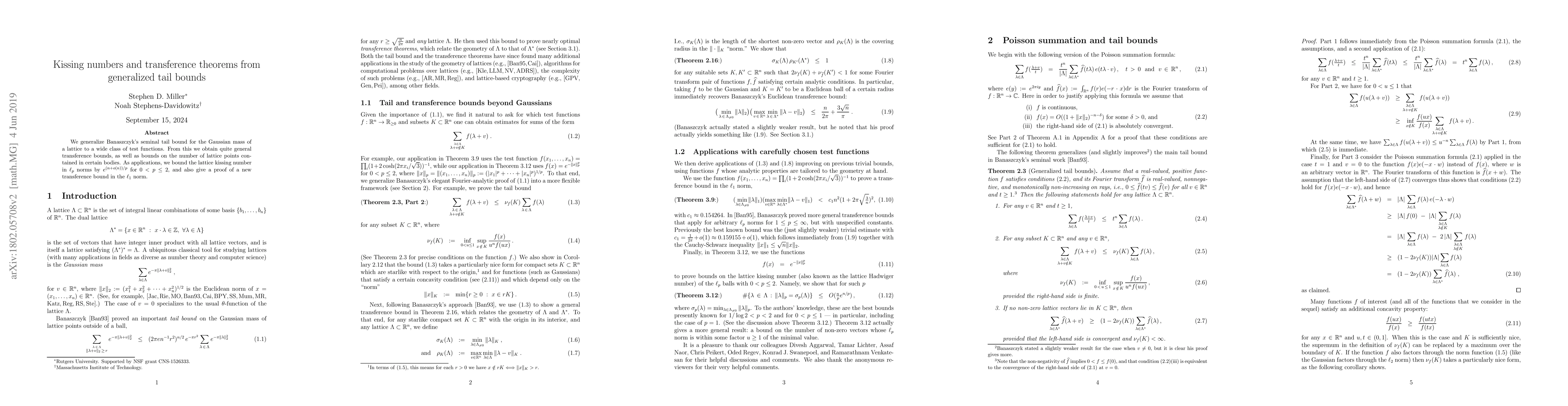 We generalize Banaszczyk's seminal tail bound for the Gaussian mass of a lattice to a wide class of test functions. From this we obtain quite general transference bounds, as well as bounds on the number of lattice points contained in certain bodies. As applications, we bound the lattice kissing number in $\ell_p$ norms by $e^{(n+ o(n))/p}$ for $0 < p \leq 2$, and also give a proof of a new transference bound in the $\ell_1$ norm.