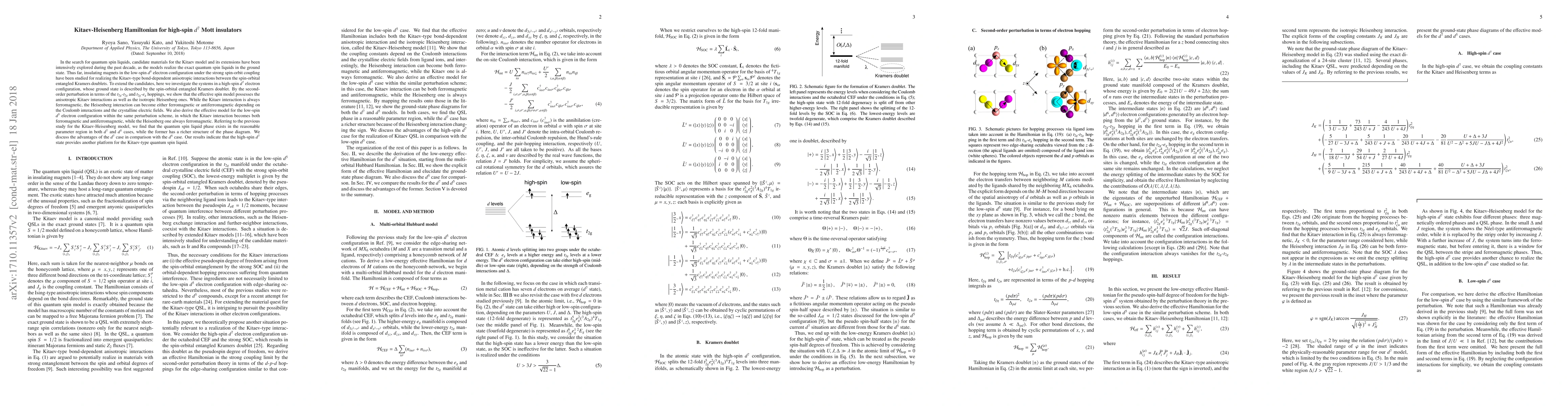 This paper explores the Kitaev-Heisenberg Hamiltonian in high-spin $d^7$ Mott insulators, revealing that the system exhibits both Kitaev and Heisenberg interactions, with the latter's nature dependent on Coulomb interactions and crystalline electric fields. It suggests that high-spin $d^7$ configurations provide a richer platform for quantum spin liquid phases compared to low-spin $d^5$ configurations.