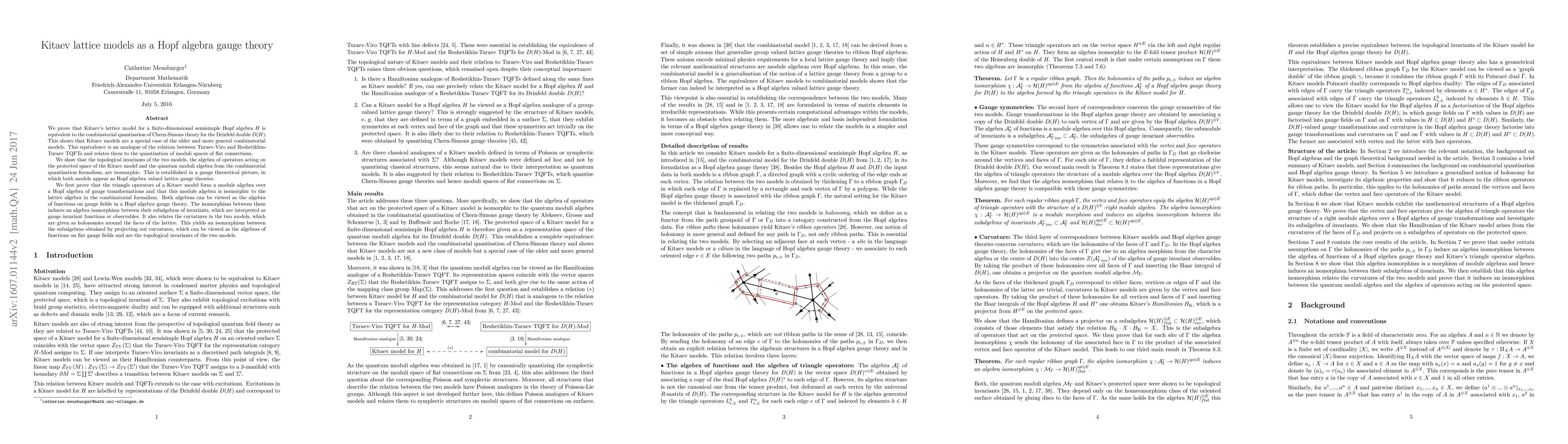 Researchers prove that Kitaev lattice models are equivalent to a special case of older combinatorial models, revealing an analogy between these models and Chern-Simons theory in the context of Hopf algebra gauge theories.