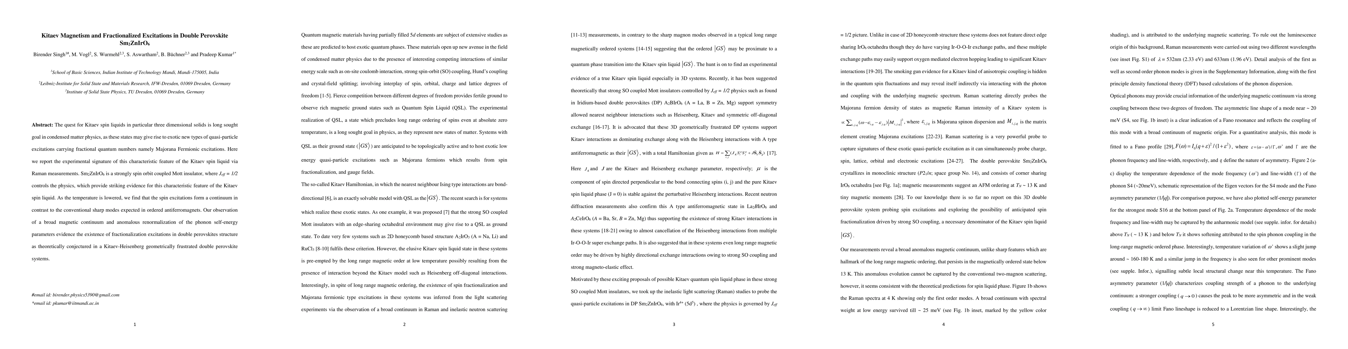 The quest for Kitaev spin liquids in particular three dimensional solids is long sought goal in condensed matter physics, as these states may give rise to exotic new types of quasi-particle excitations carrying fractional quantum numbers namely Majorana Fermionic excitations. Here we report the experimental signature of this characteristic feature of the Kitaev spin liquid via Raman measurements. Sm2ZnIrO6 is a strongly spin orbit coupled Mott insulator, where Jeff = 1/2 controls the physics, which provide striking evidence for this characteristic feature of the Kitaev spin liquid. As the temperature is lowered, we find that the spin excitations form a continuum in contrast to the conventional sharp modes expected in ordered antiferromagnets. Our observation of a broad magnetic continuum and anomalous renormalization of the phonon self-energy parameters evidence the existence of Majorana fermions from spin fractionalization in double perovskites structure as theoretically conjectured in a Kitaev-Heisenberg geometrically frustrated double perovskite systems.